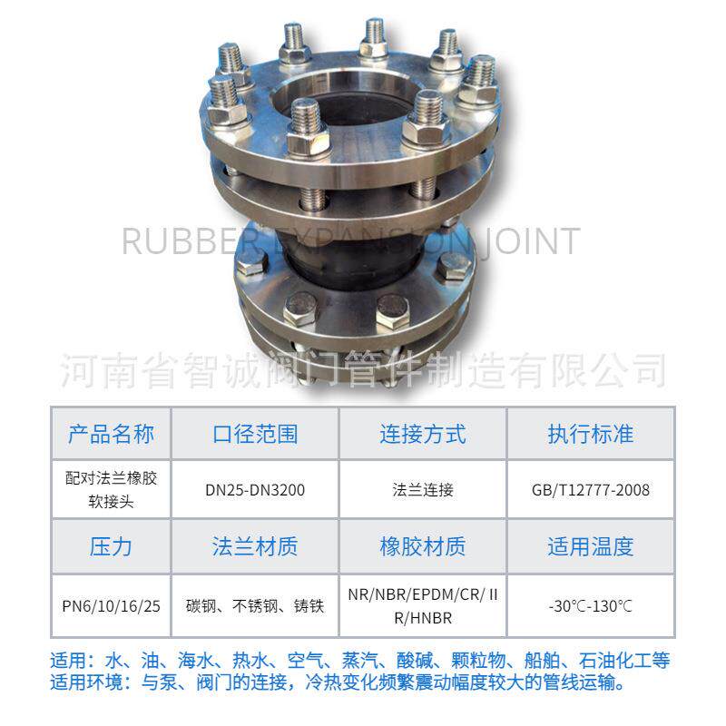 📚 配对法兰含螺栓螺母轴向横向偏移可曲挠橡胶膨胀节橡胶软接头