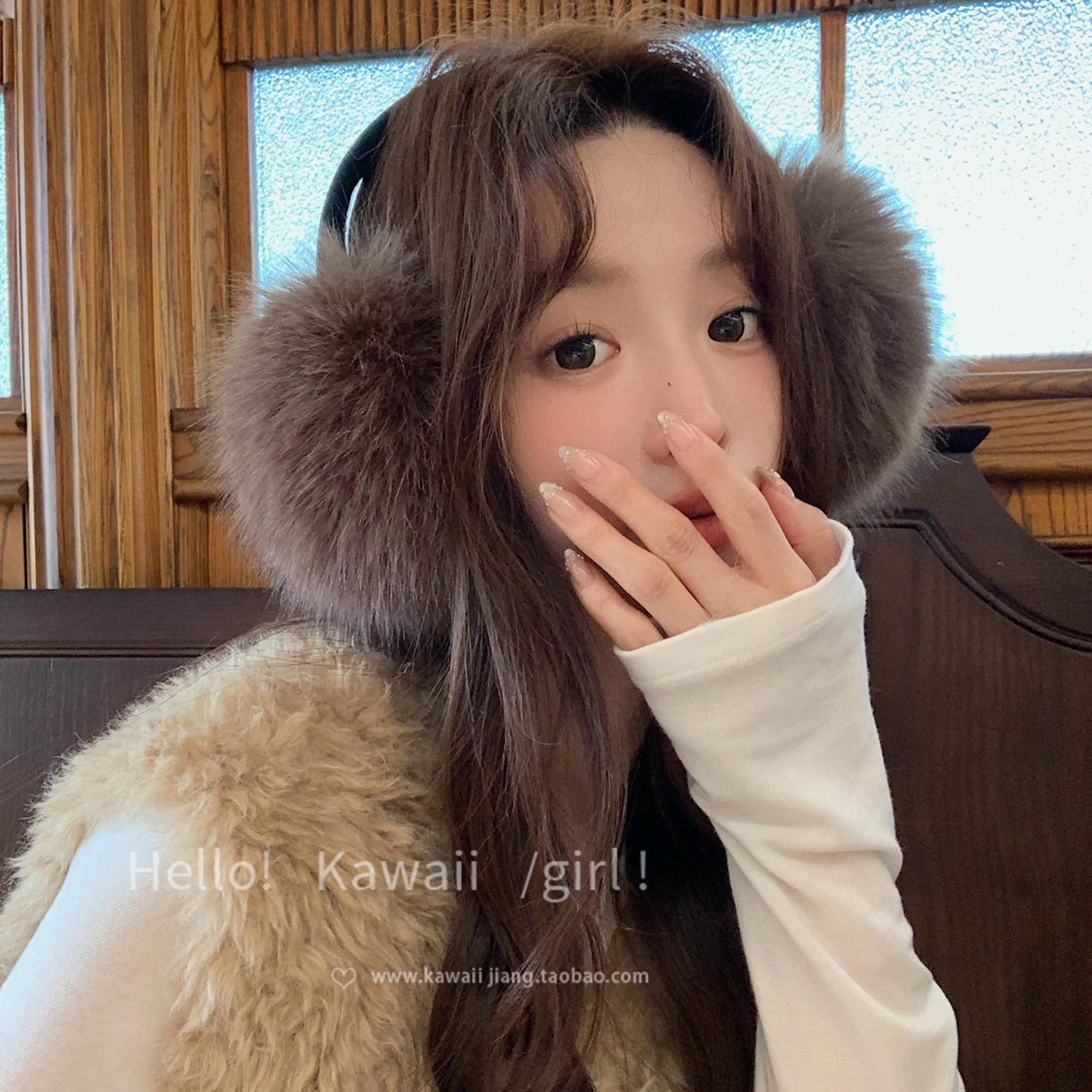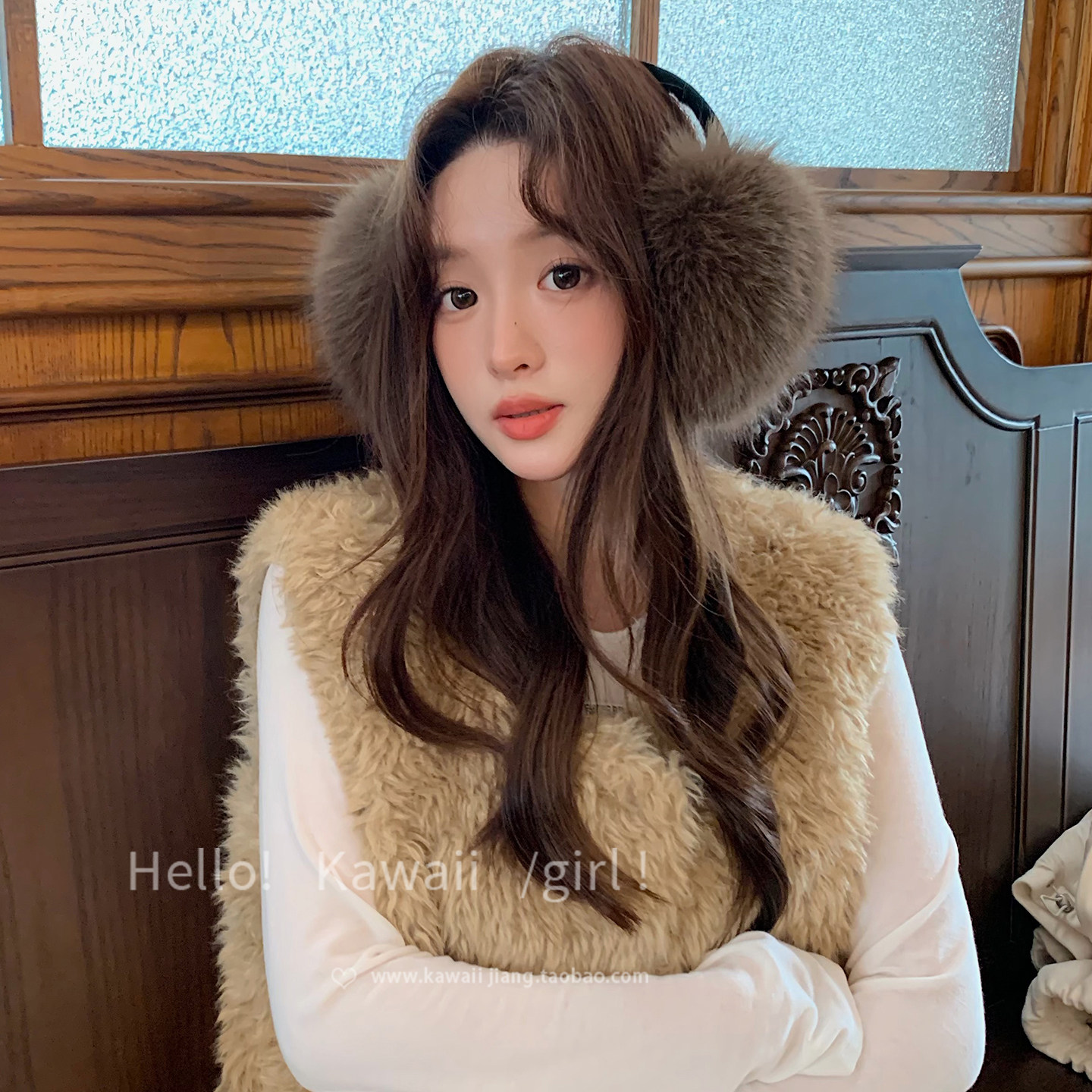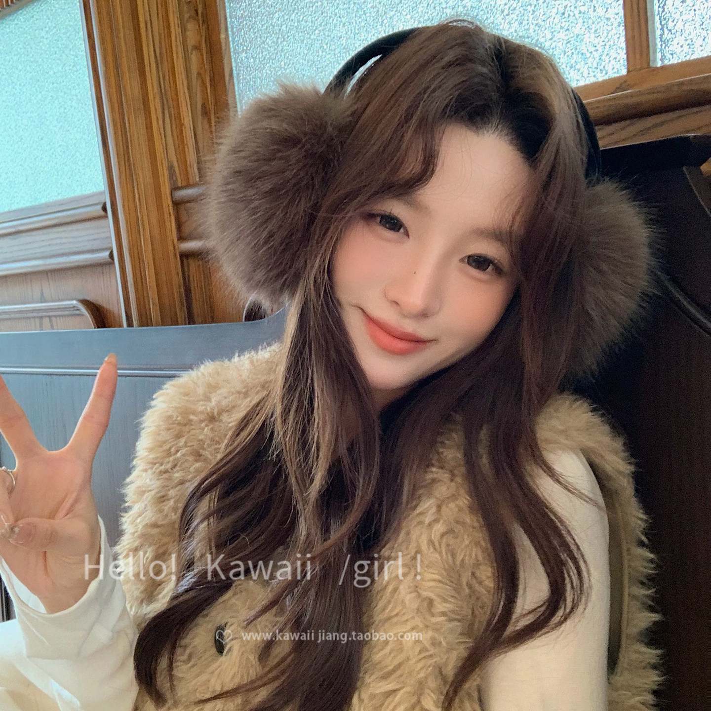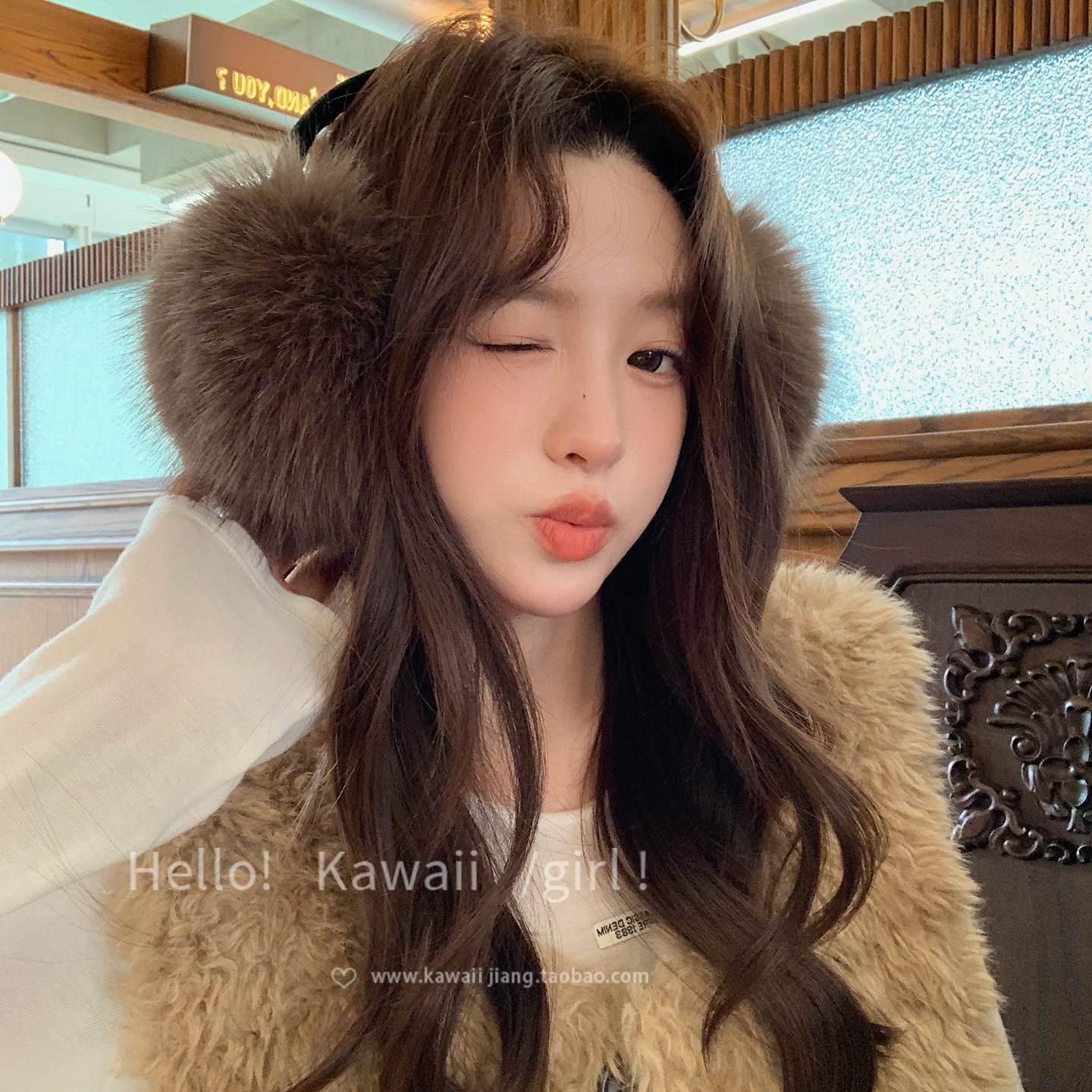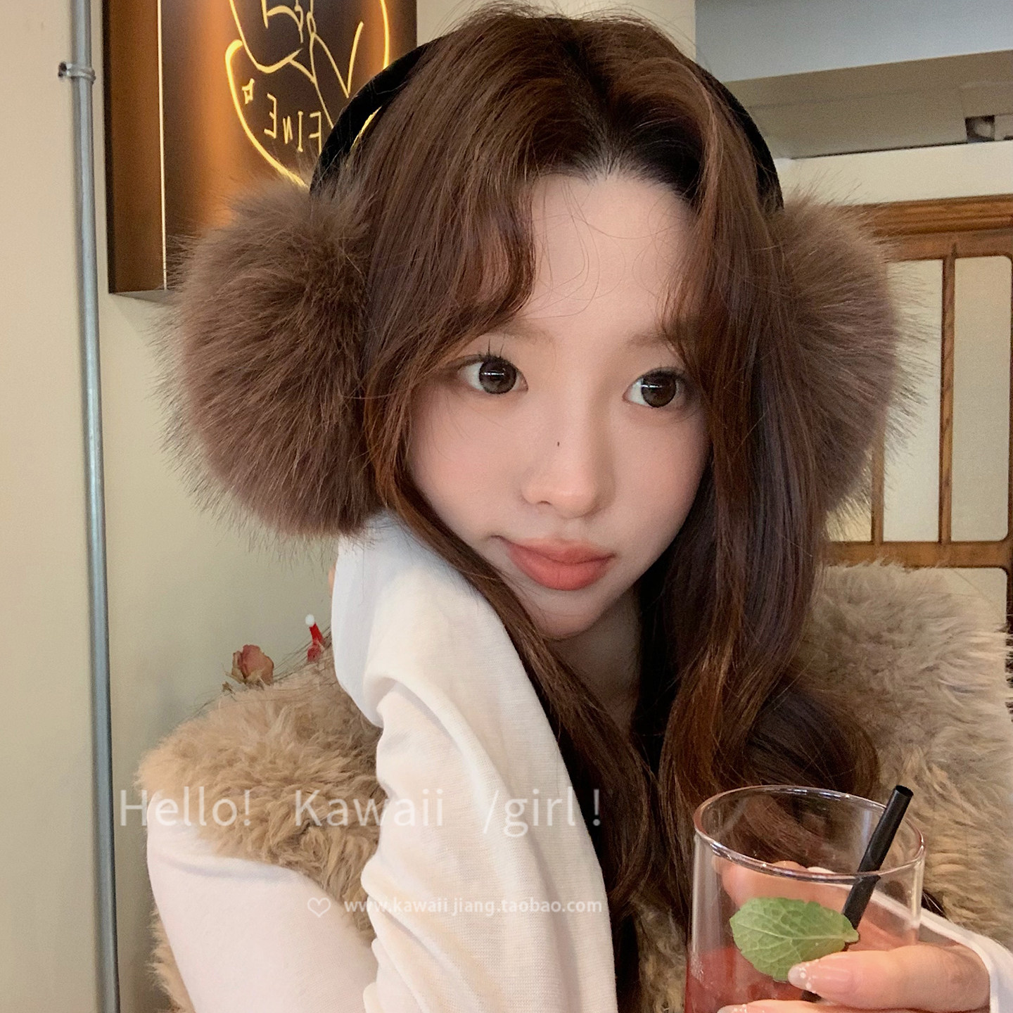 📚 y2k辣妹咖色仿貂毛皮杆耳罩韩系氛围感毛绒耳包秋冬保暖骑行耳套