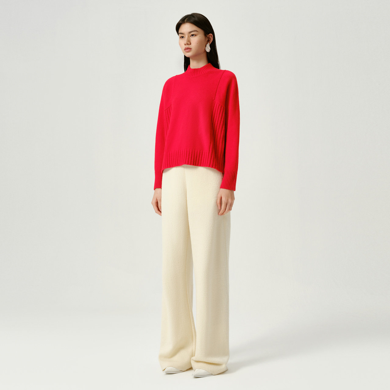 📚 IMM尹默冬美丽诺羊毛混羊绒红色宽松高领毛针织衫上衣女