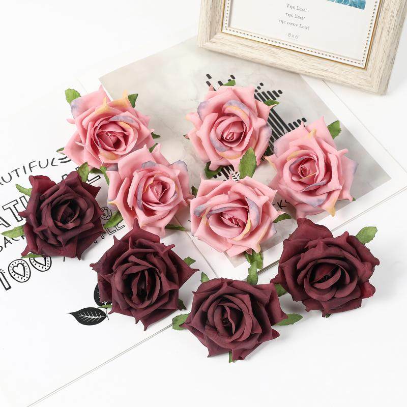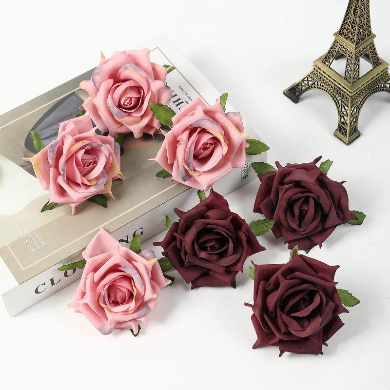 📚 仿真尖角玫瑰花头花朵 假花 布花 diy手工花环花墙材料 婚庆装饰