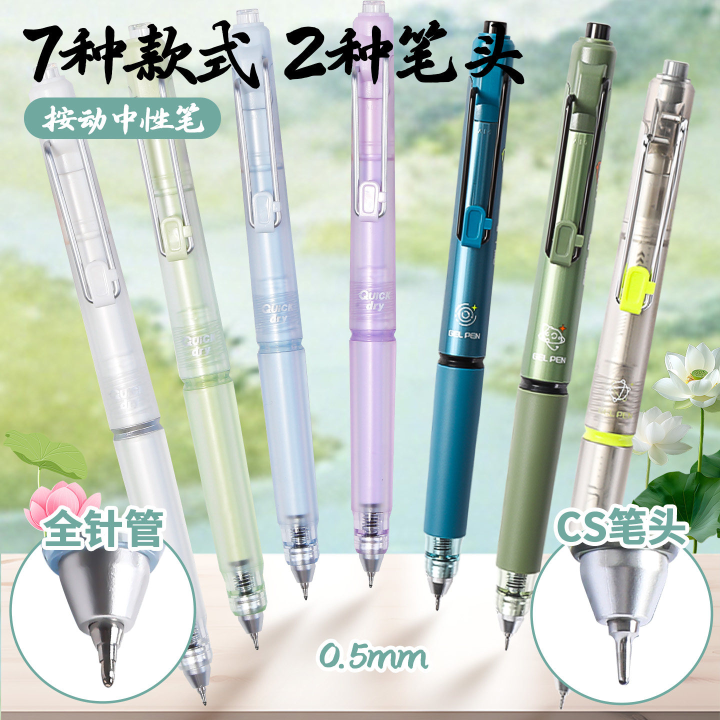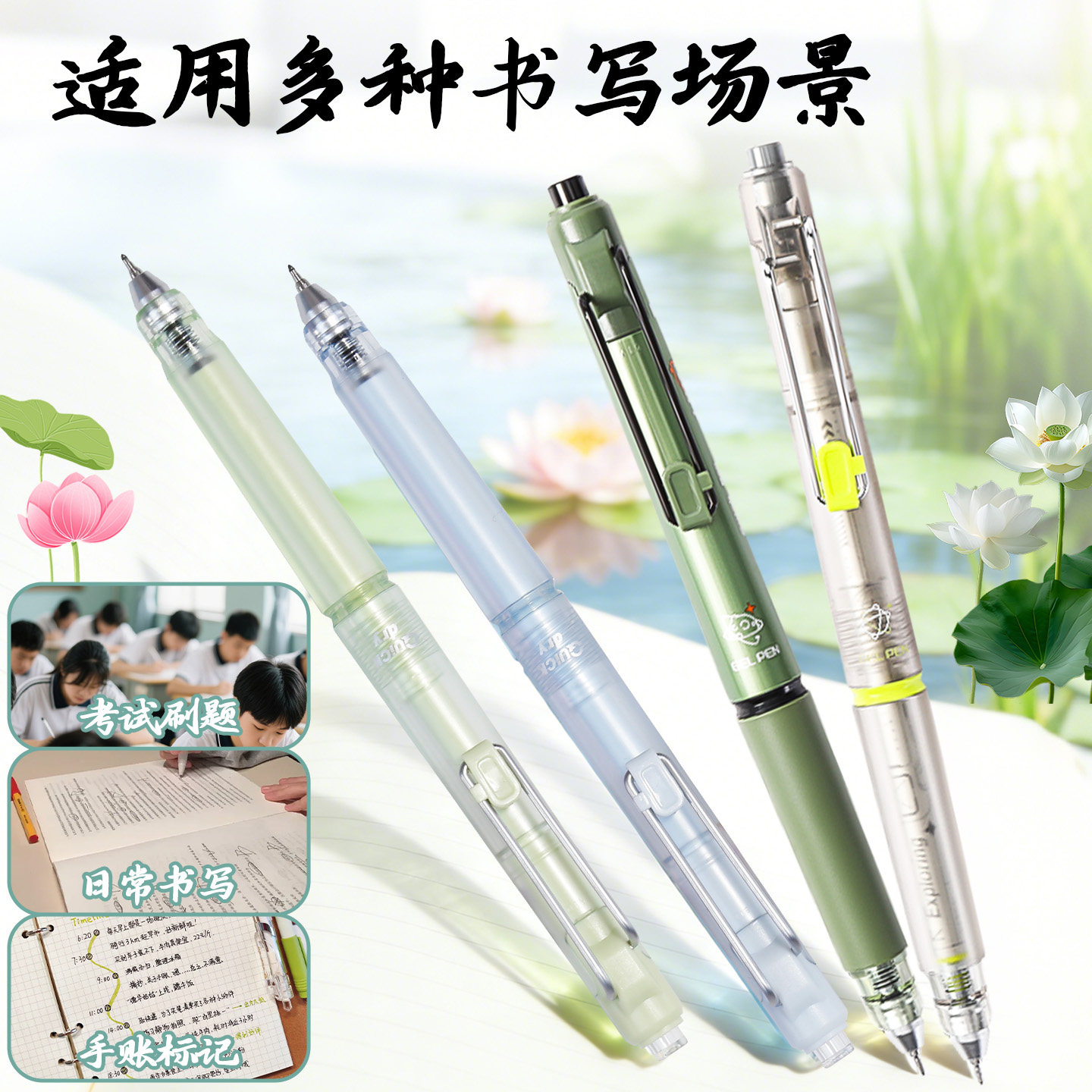 📚 晨光夏至按动中性笔速干加强型全针管中小学生刷题笔考试专用黑笔