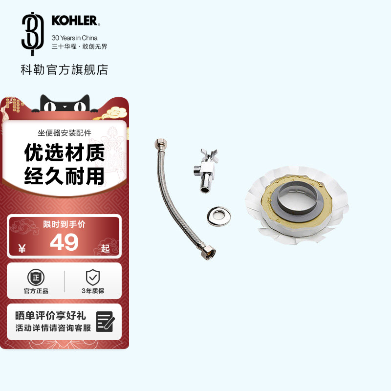 📚 科勒官方旗舰店坐便器马桶国标安装三件套马桶配件法兰密封圈