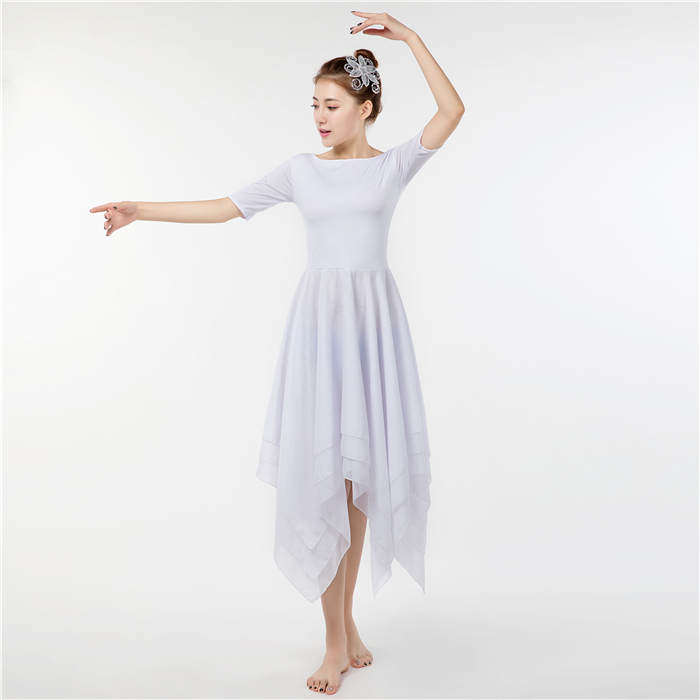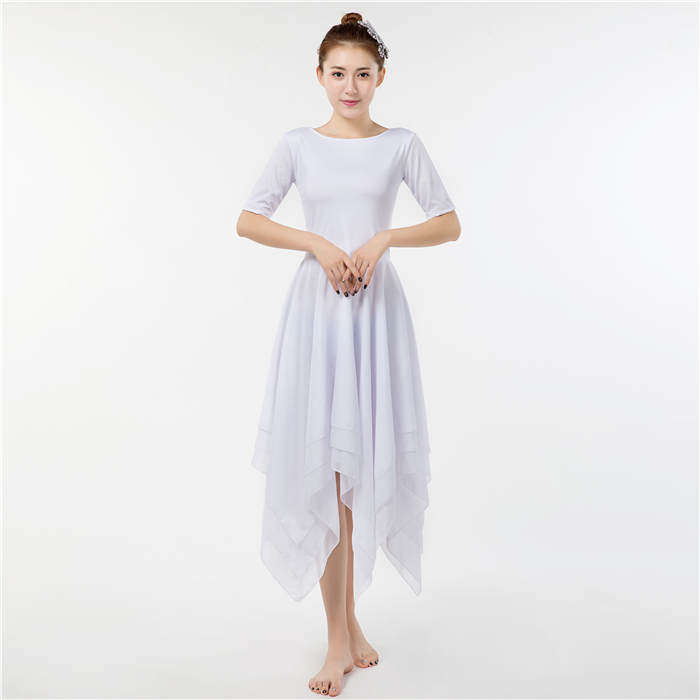📚 男女演出服成人白色连衣裙青春现代舞蹈服芭蕾舞表演裙飘逸舞台装