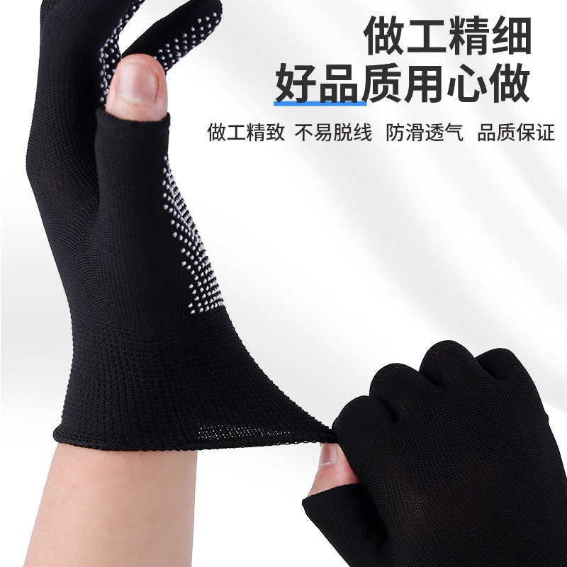 📚 手套劳保工作耐磨防滑露二半指钓鱼骑行防晒外卖快递干活打包分拣