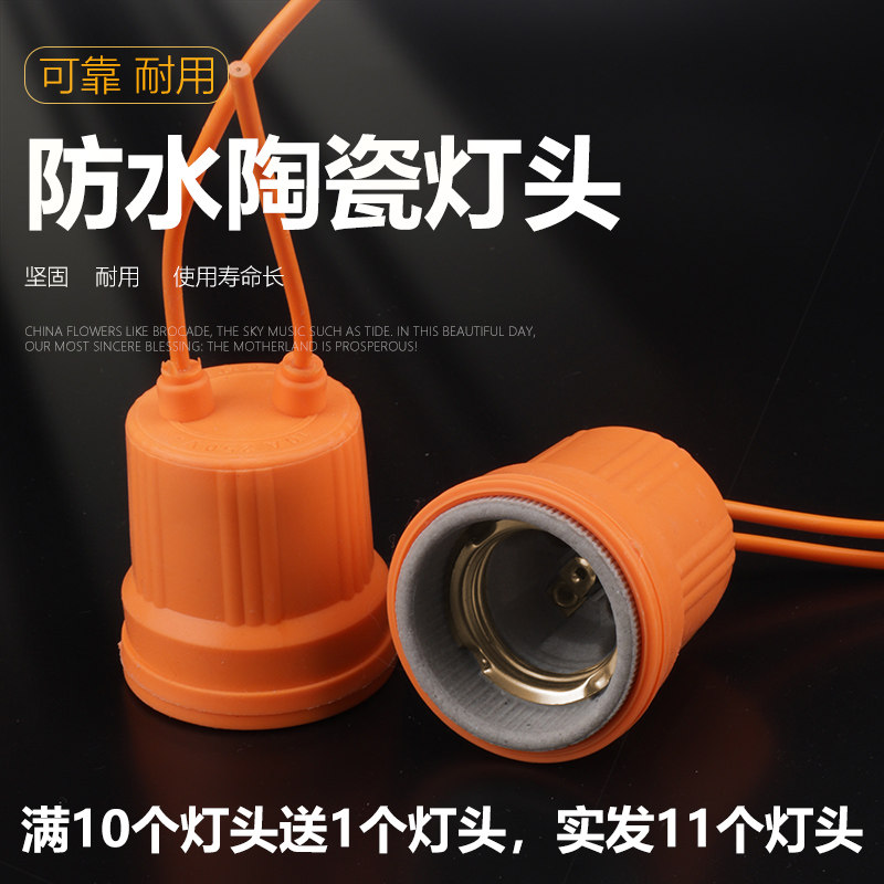 📚 大功率LED灯泡防水陶瓷灯头灯口家用开关螺口阻燃户外E27带线灯座