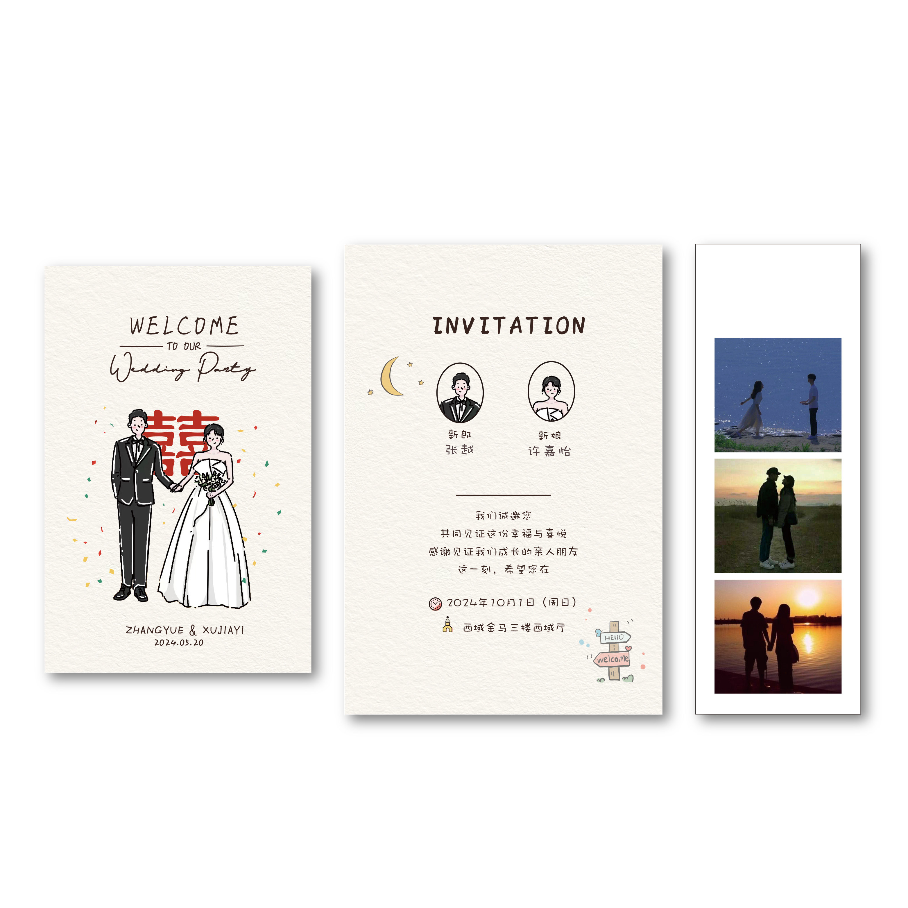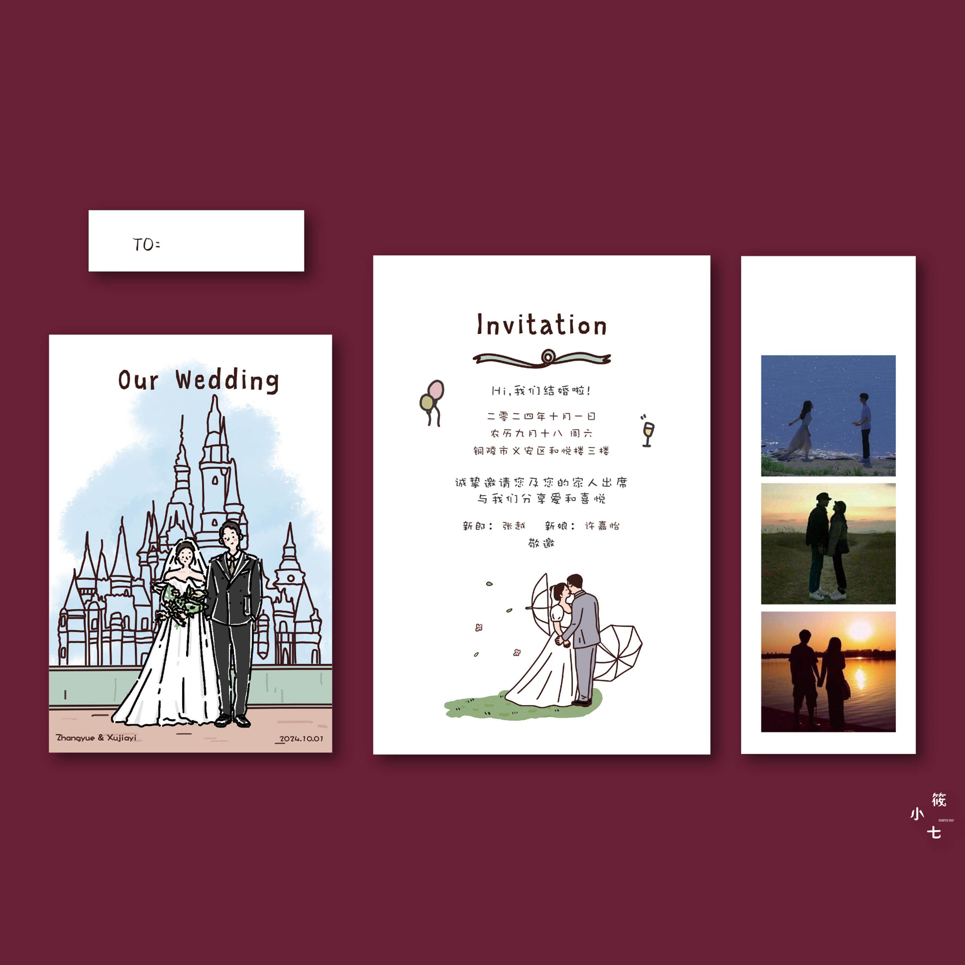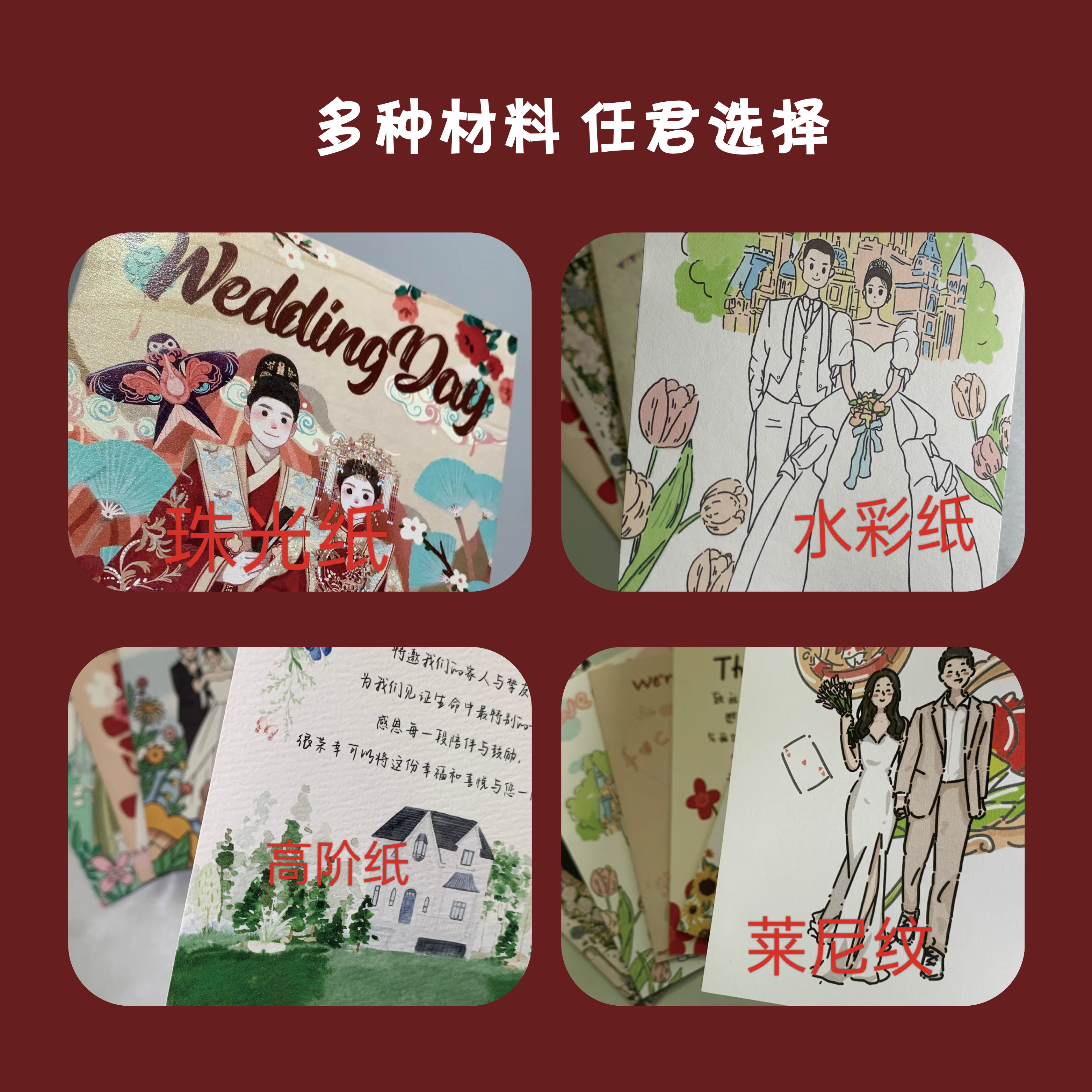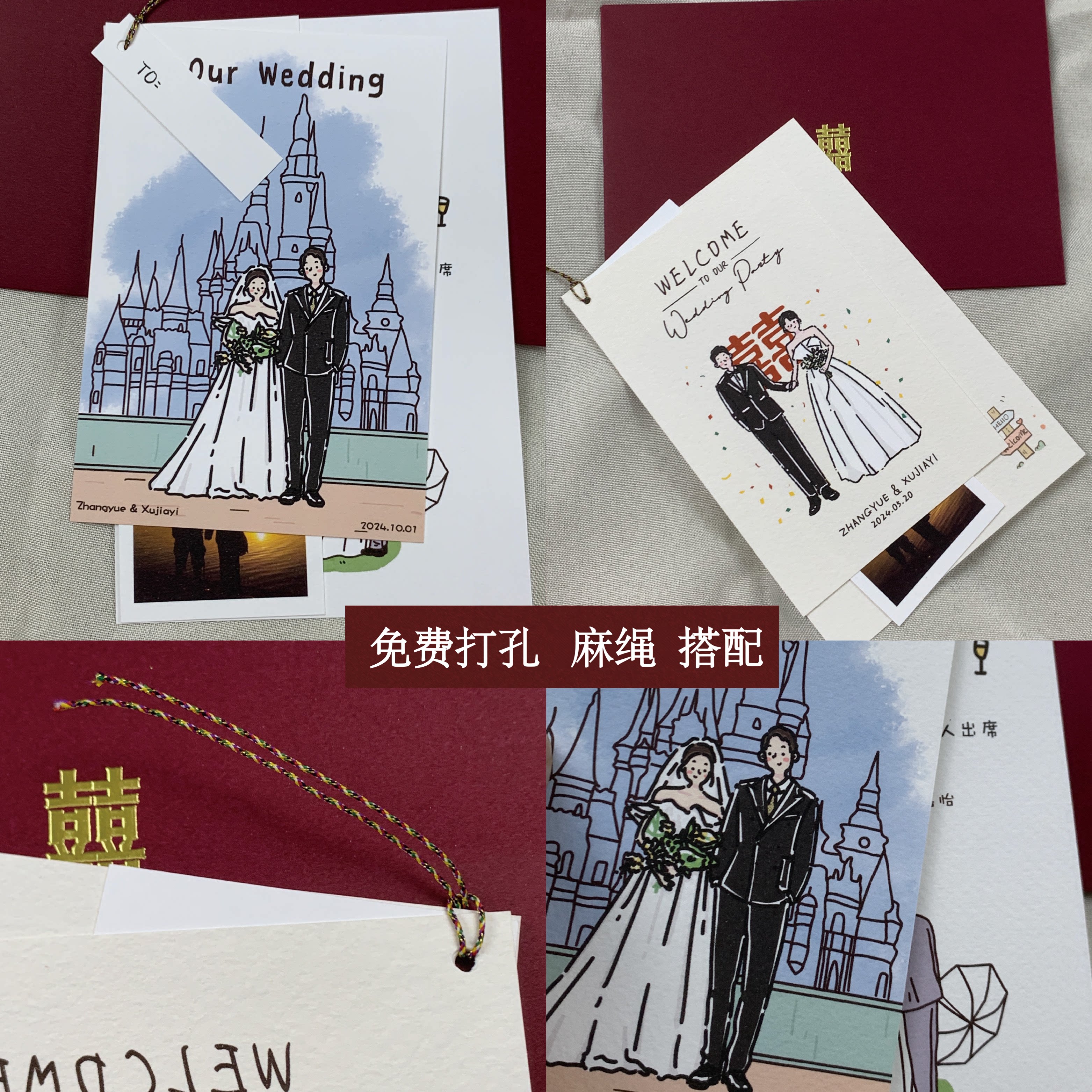 📚 高阶纸婚礼请柬吊牌卡通手绘请帖来图定制打印邀请函印刷结婚喜帖