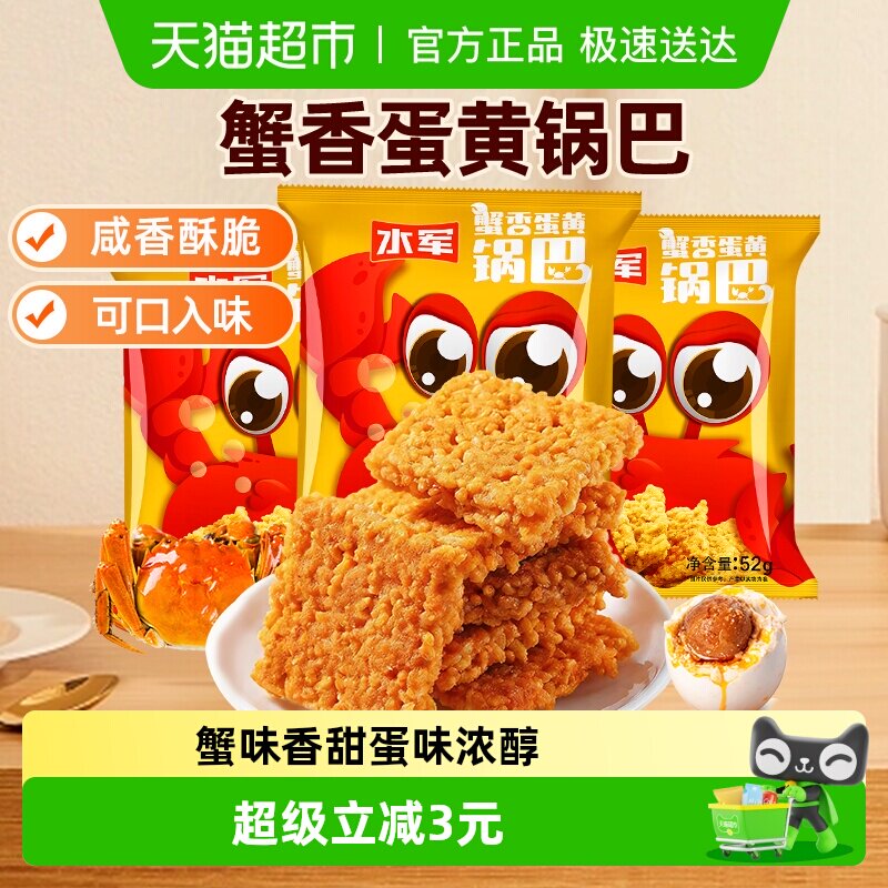 📚 水军蟹香蛋黄脆锅巴休闲膨化食品蟹黄办公室网红小吃零食