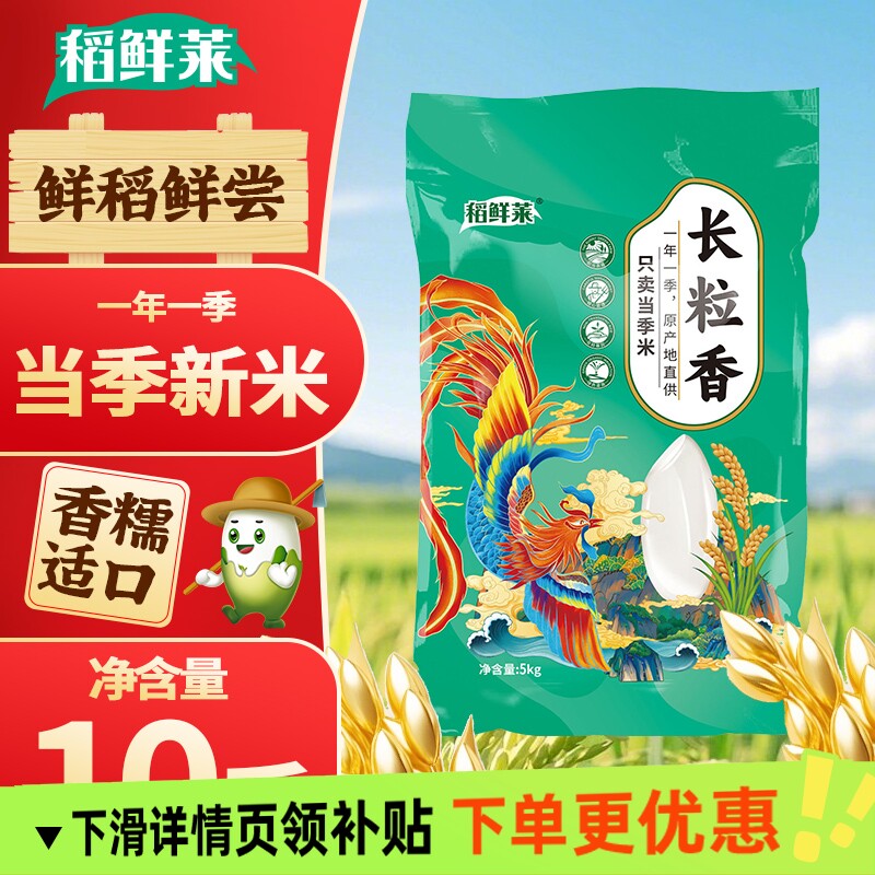 📚 稻鲜莱长粒香大米当季新米真空黑土地产地10斤软糯飘香家庭装米饭