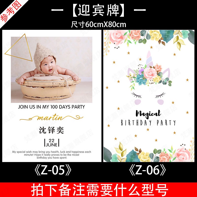 📚 宝宝百日宴会迎宾指引水牌kt版满月周岁生日派对酒店门口装饰布置