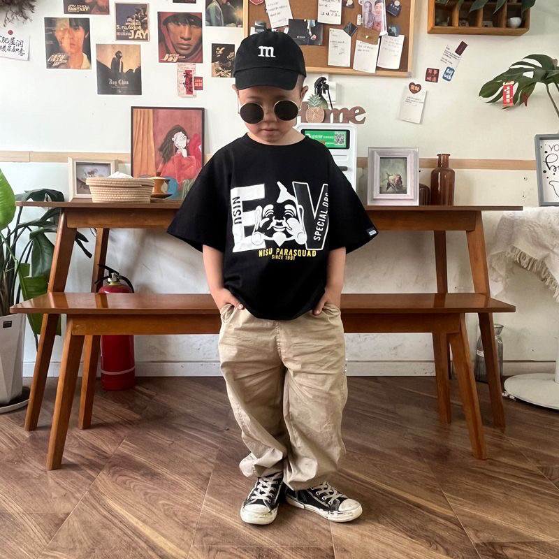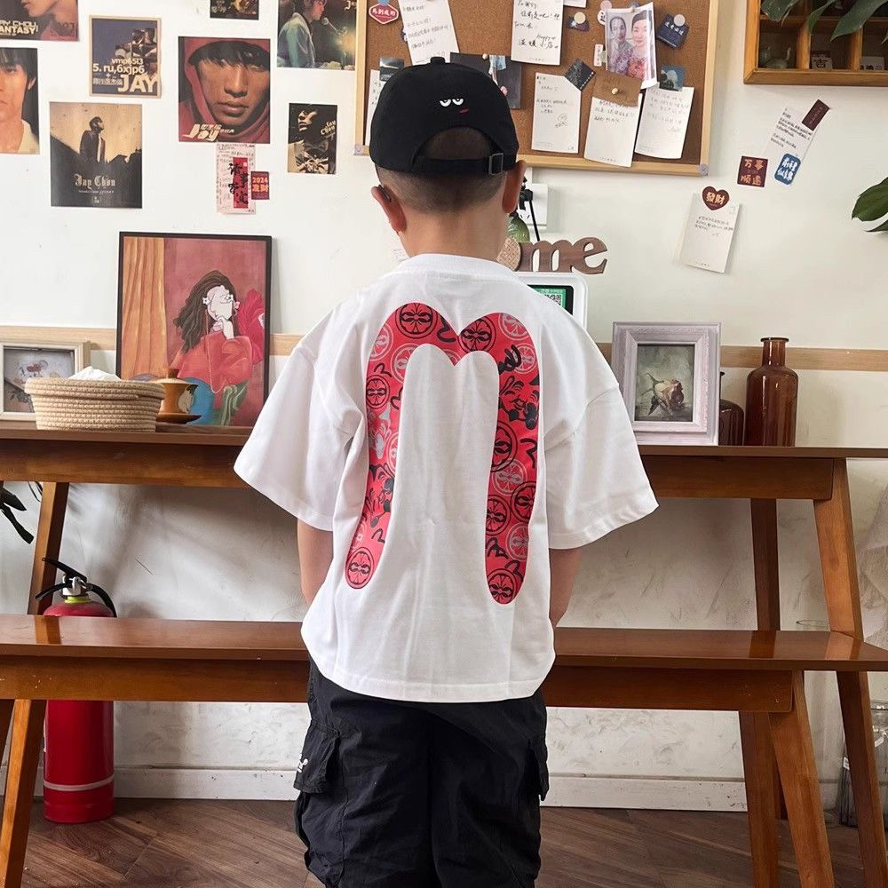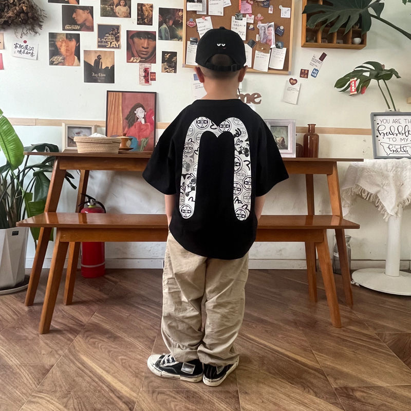 📚 日系潮牌男童福神短袖T恤夏季新款宝宝M字母印花圆领休闲上衣童装