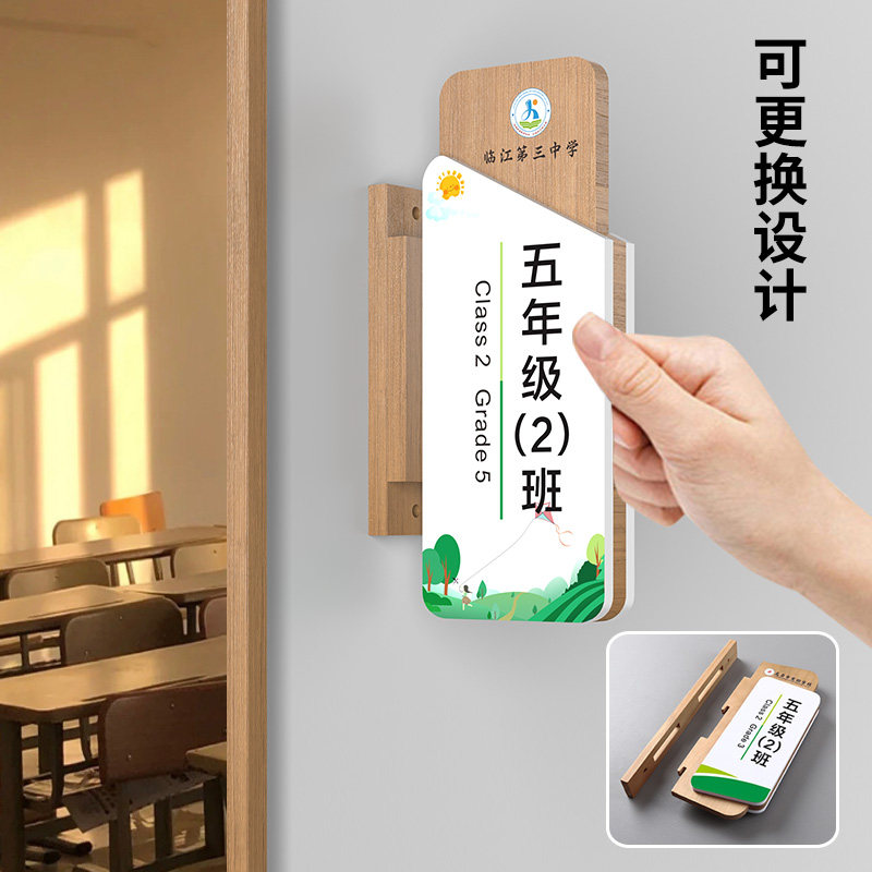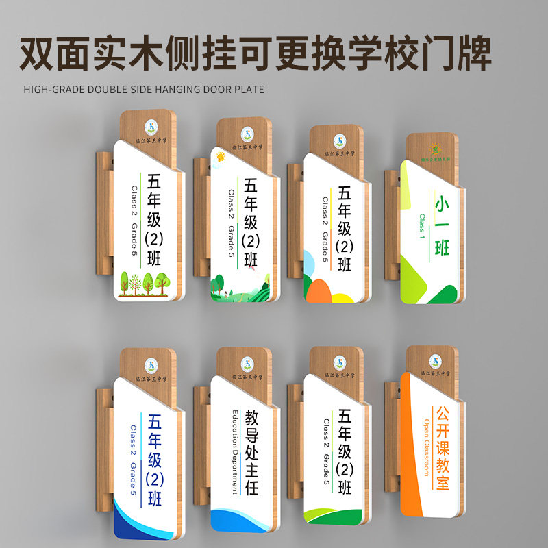 📚 学校侧挂可更换实木门牌学院班级年级牌教室科室牌校长老师教导处办公室标识牌培训机构课室牌子创意标牌定制