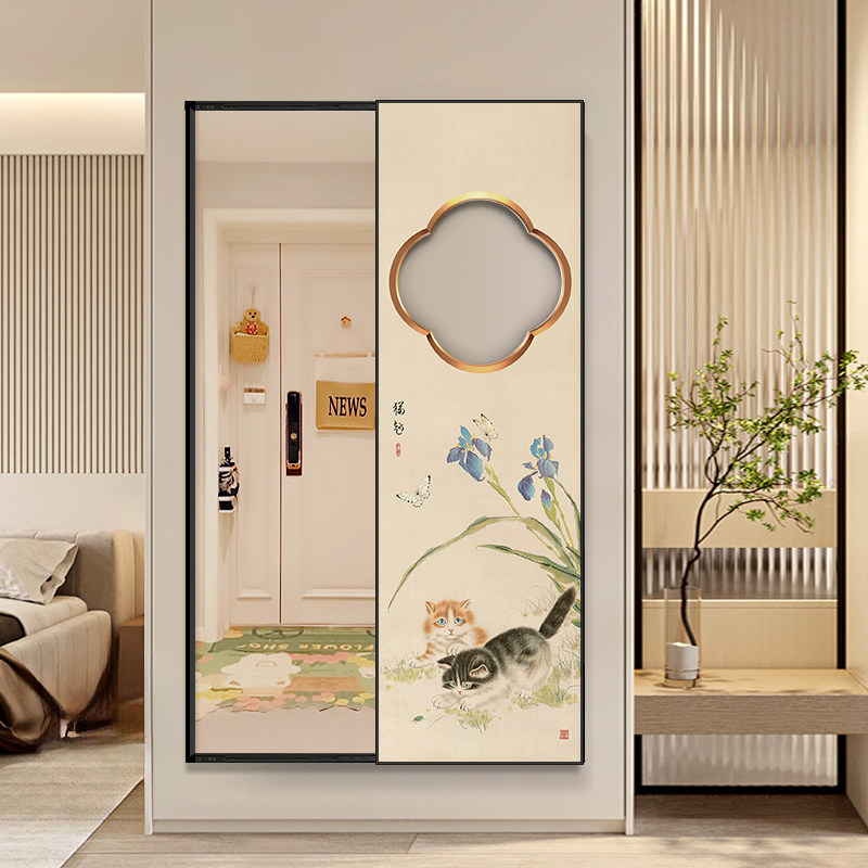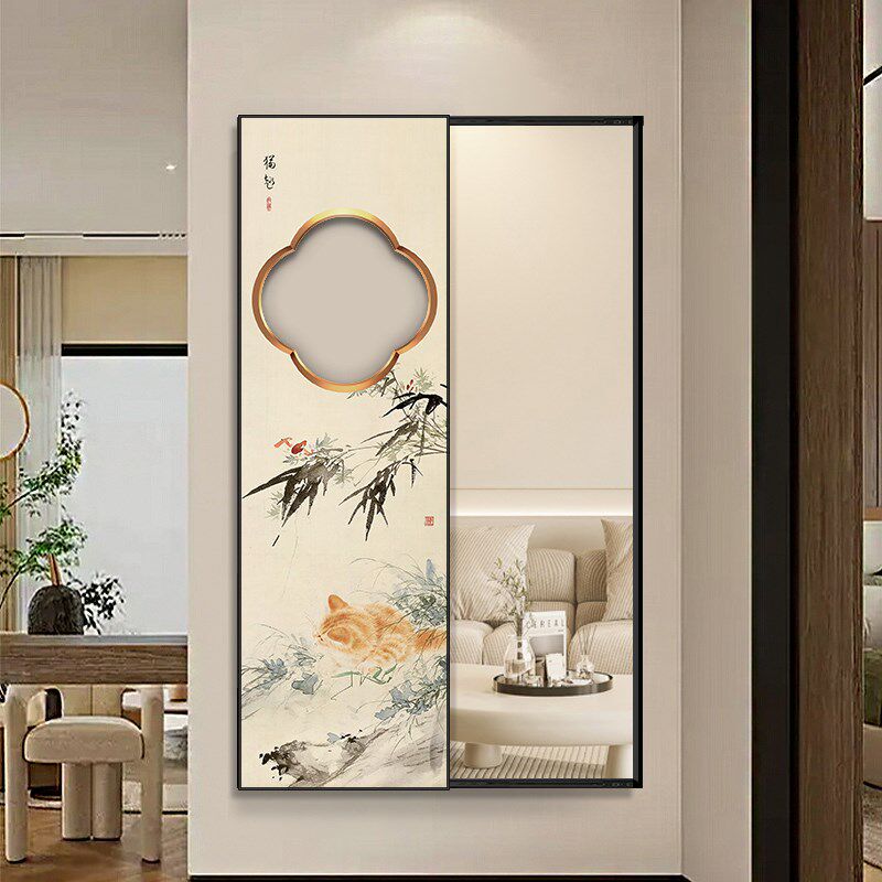 📚 中古风镜面装饰墙入户玄关镜可关闭隐身全身镜壁挂式穿衣镜挂画
