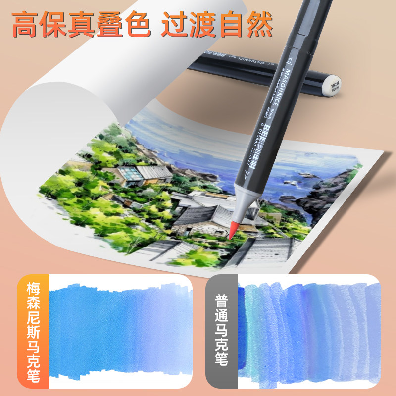 📚 梅森尼斯软头马克笔MASONNICE考研快题酒精油性速干学生美术专用手绘动漫速写建筑环艺服装设计专业画画套装