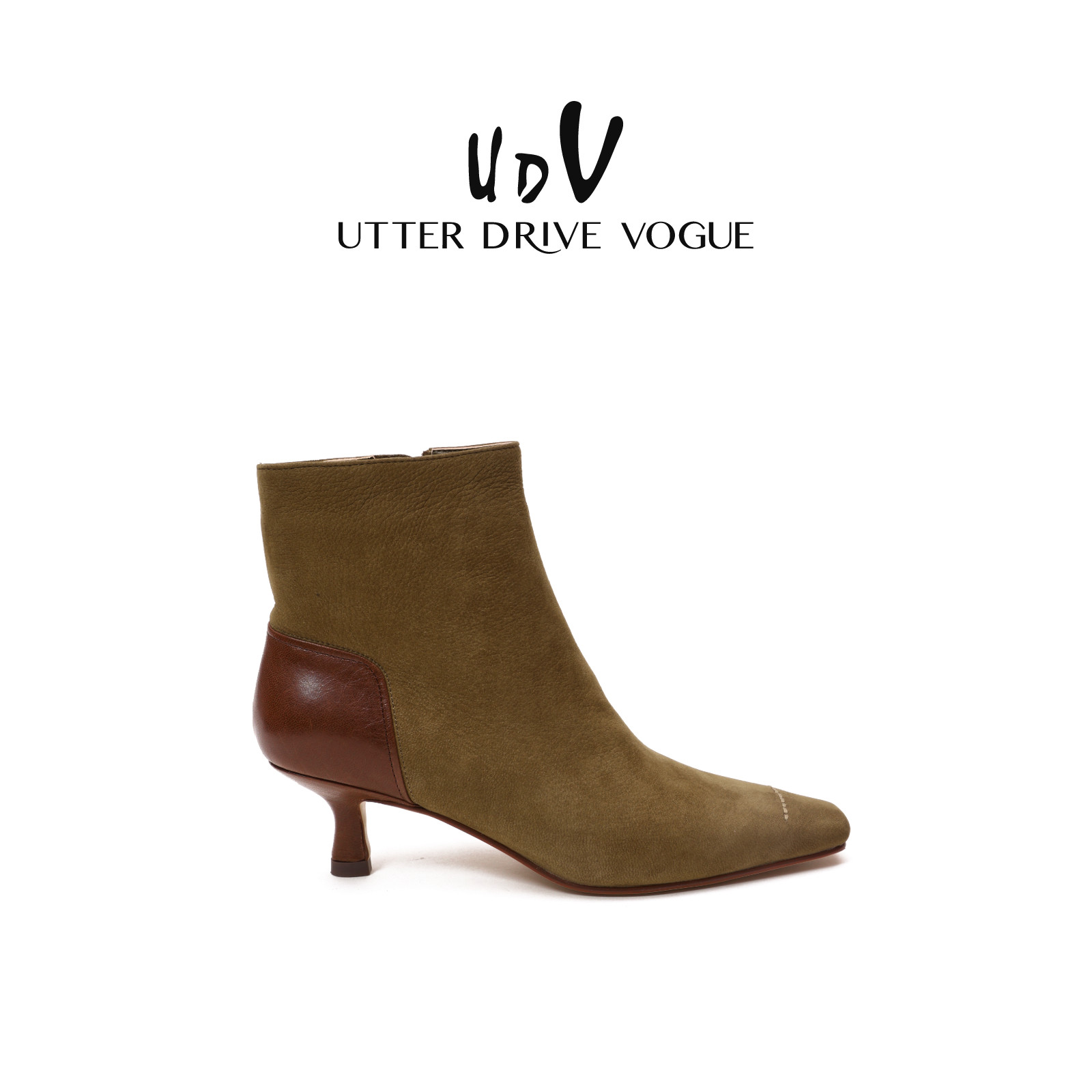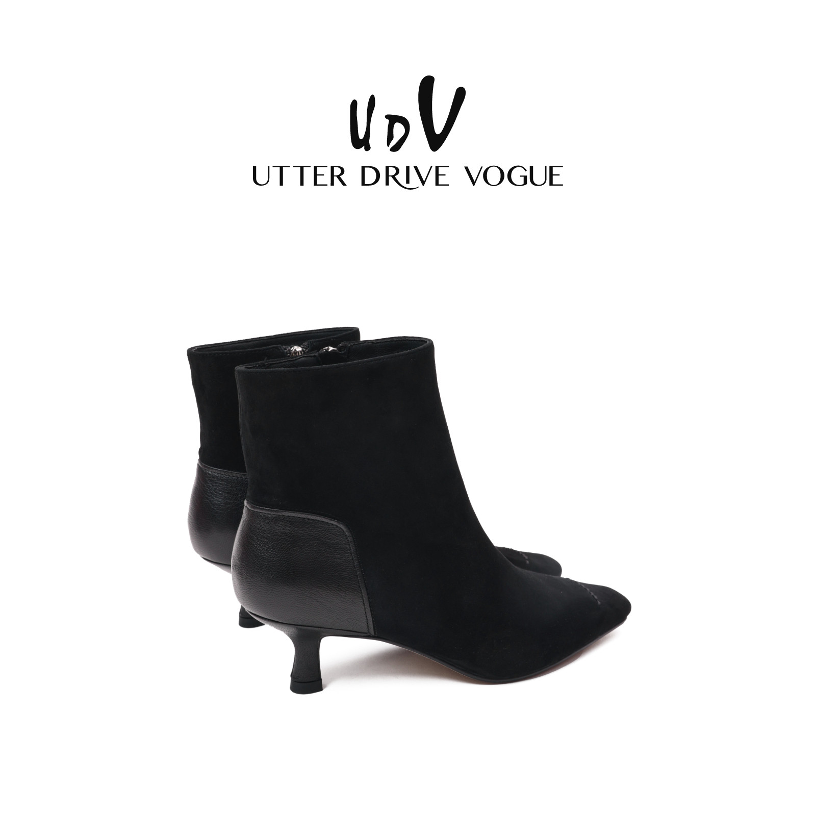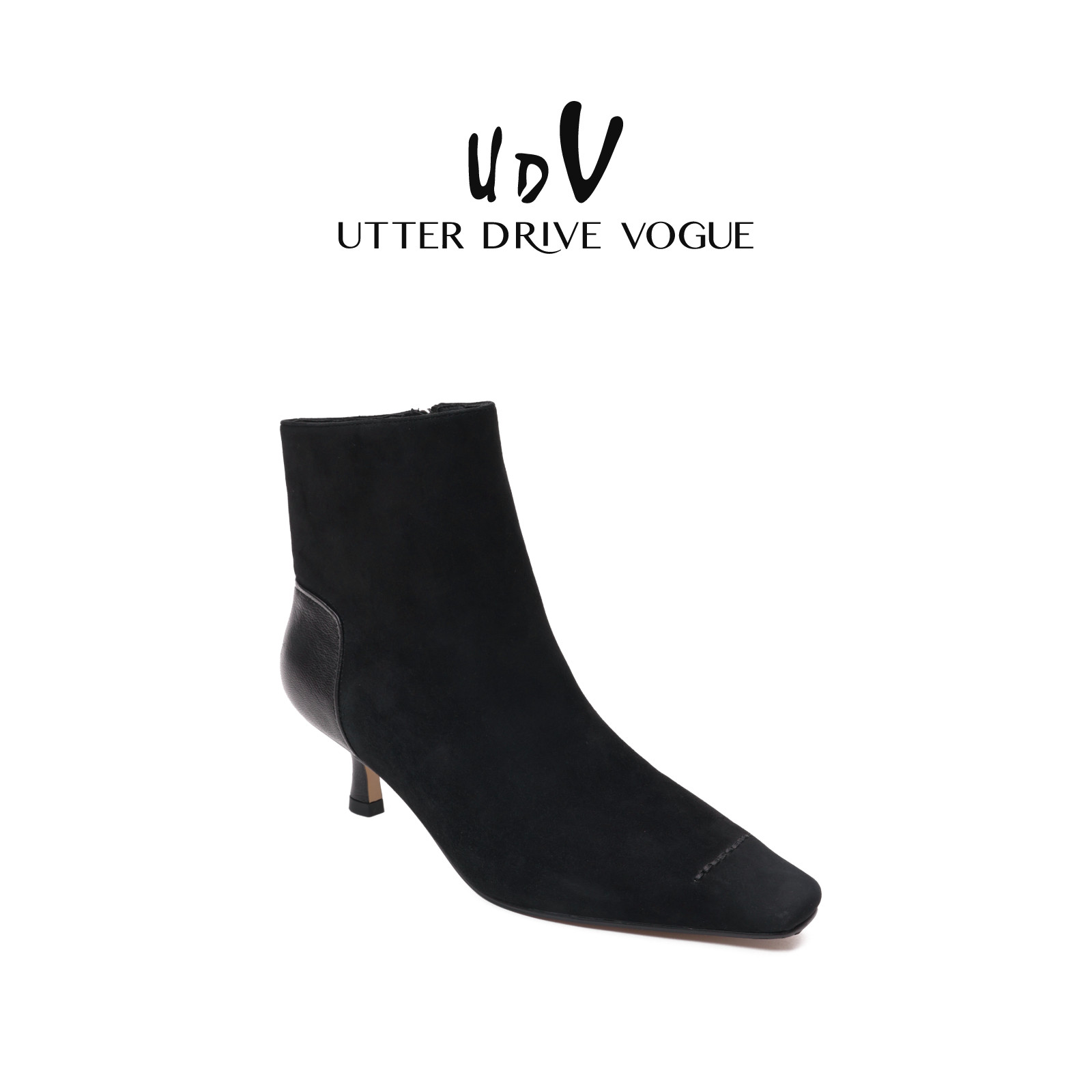 📚 UDV细跟时装靴女2025秋季新款磨砂皮复古高跟鞋羊皮气质短靴侧拉