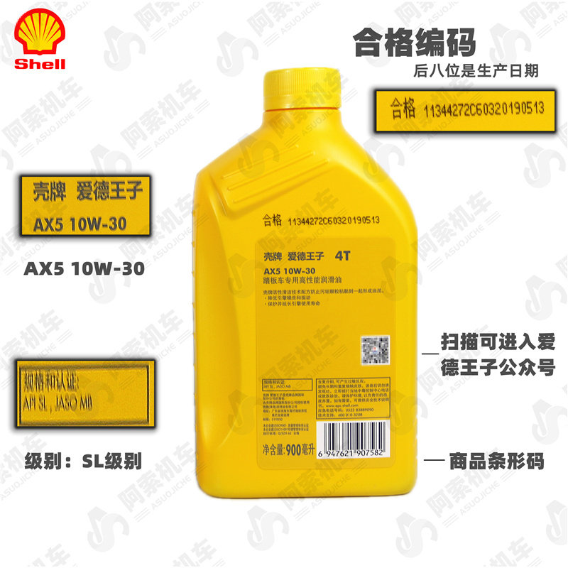 📚 壳牌 踏板车专用机油 10W30/0.9L一瓶 ax5 爱德王子机油 包邮正品