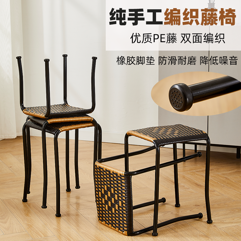 📚 藤编凳子塑料时尚小板凳加厚成人家用餐桌凳茶几凳高凳藤椅小方凳