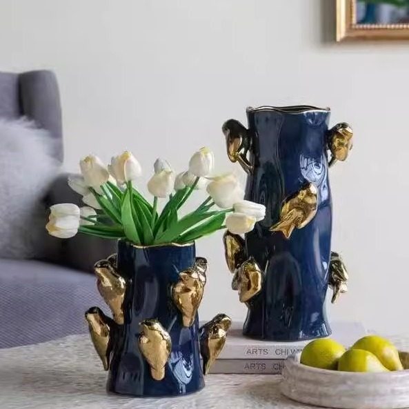 📚 ABHOUSE出口美国立体小鸟陶瓷花瓶摆件样板间软装工艺品餐桌玄关