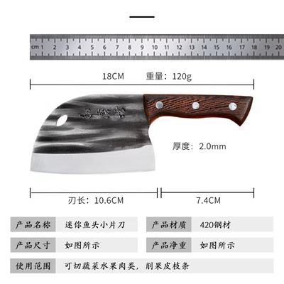 📚 利磨坊迷你小号鱼头菜刀切片刀切菜刀家用不锈钢水果刀锋利锻打刀