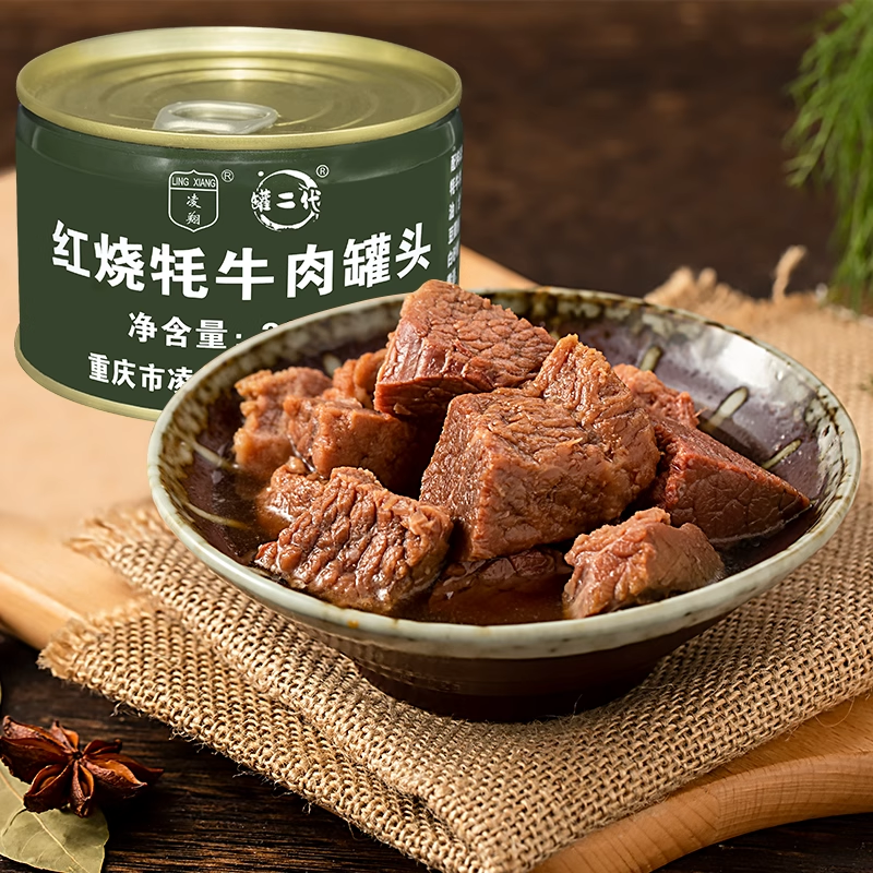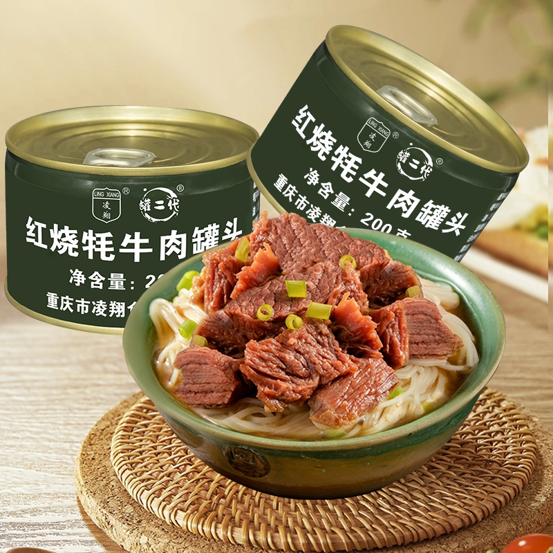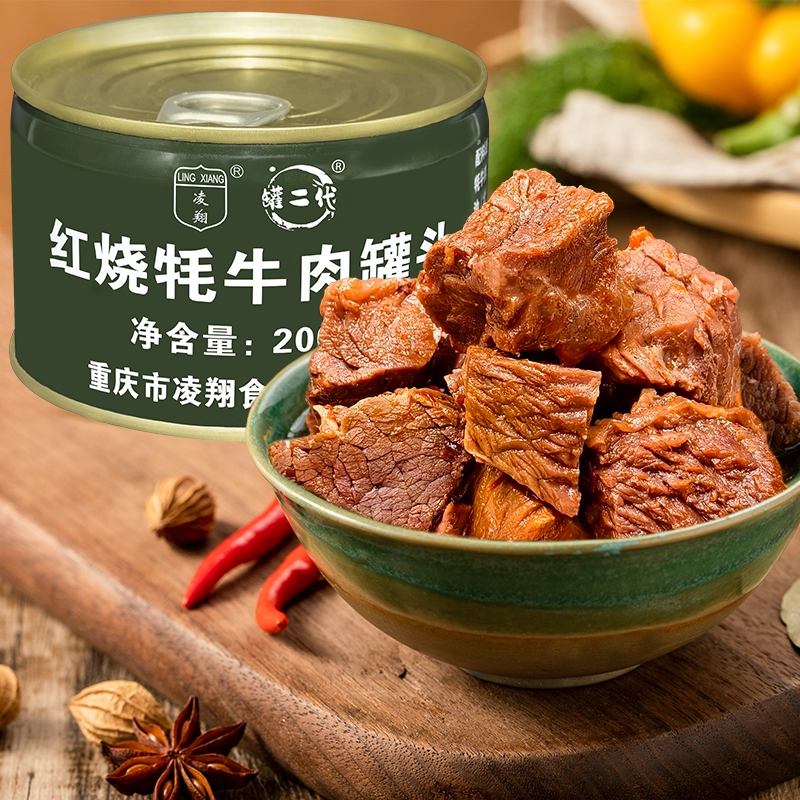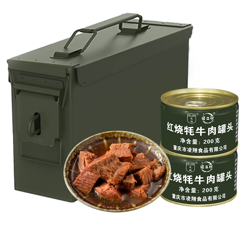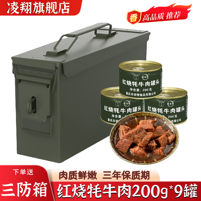 📚 送三防箱凌翔红烧牦牛肉罐头200g*9罐户外方便速食应急储备食品