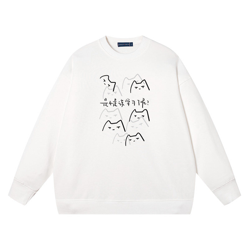 📚 秀洛是不是该写作业了呢卡通猫咪圆领卫衣中学生青少年情侣装衣服