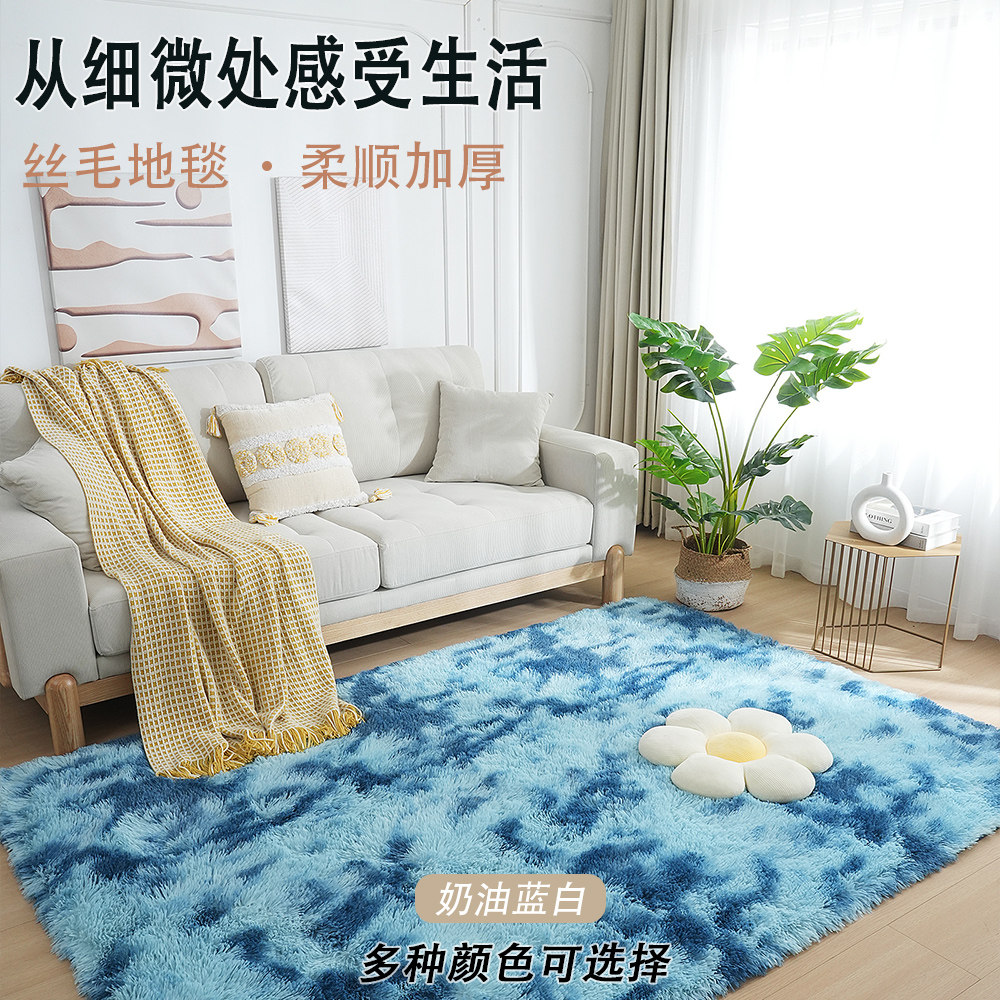 📚 北欧ins加厚地毯卧室飘窗毯床边毯客厅满铺少女简约丝毛扎染地毯