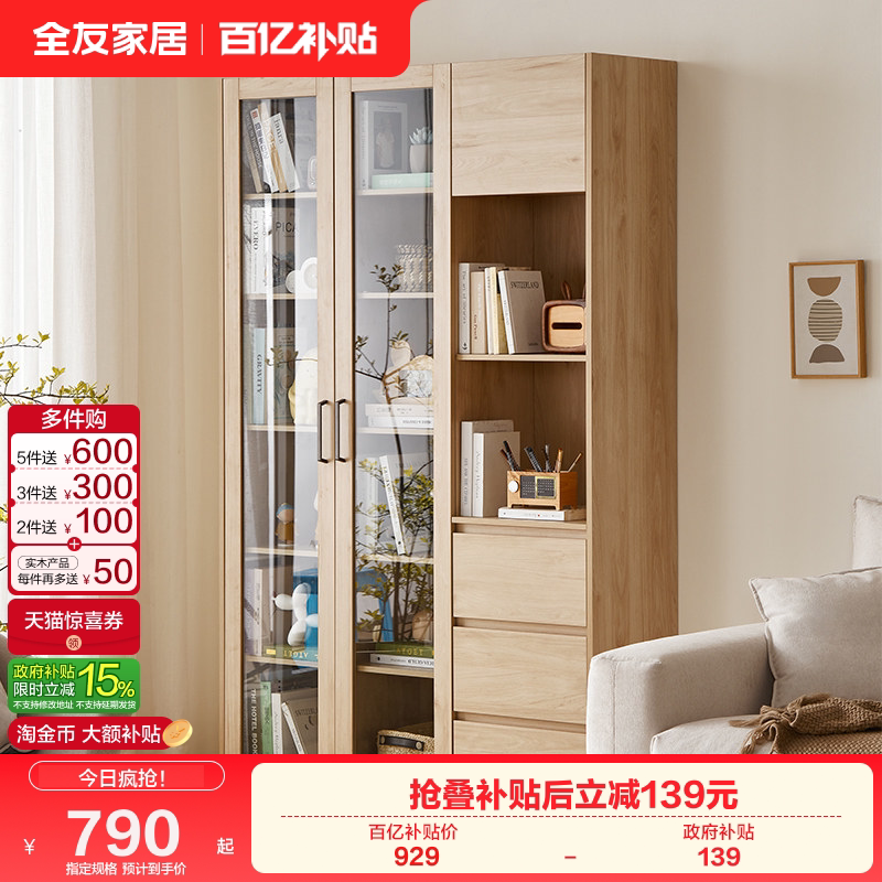 📚 全友家居北欧原木风客厅玻璃门收纳书橱沙发背景柜子靠墙组合书柜