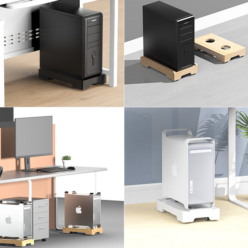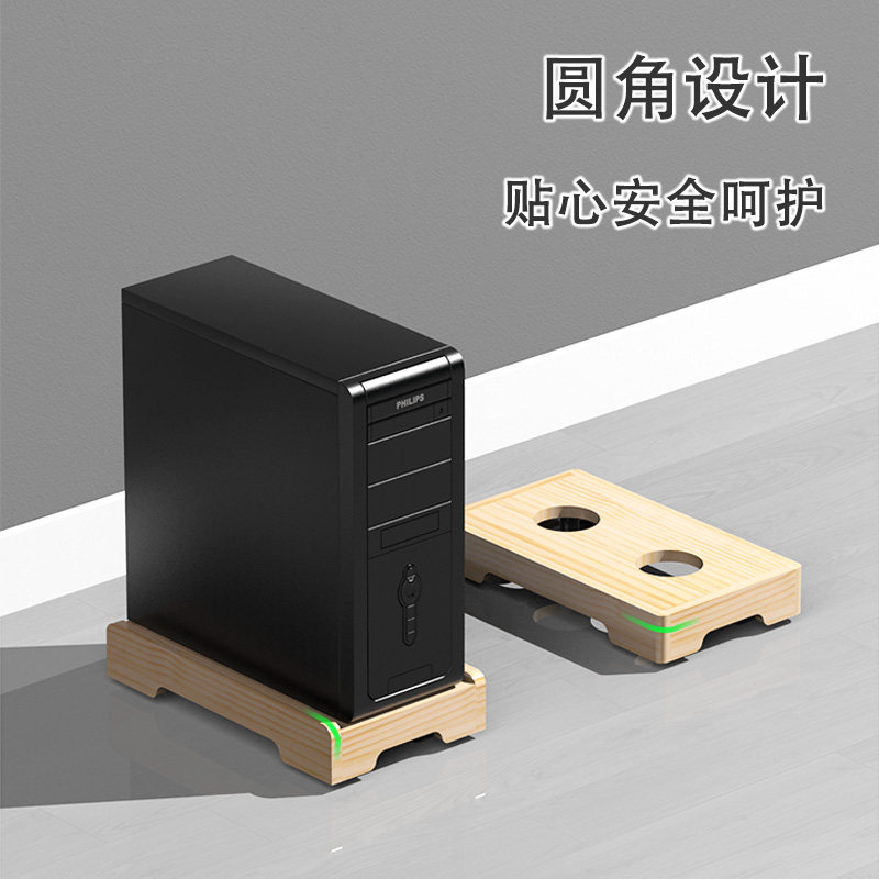 📚 实木台式电脑主机箱底座托架万向可移动带滑轮散热支架置物架托盘