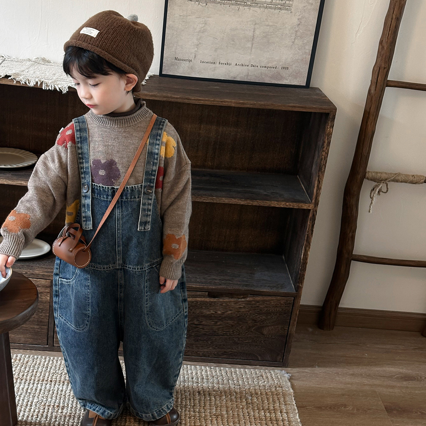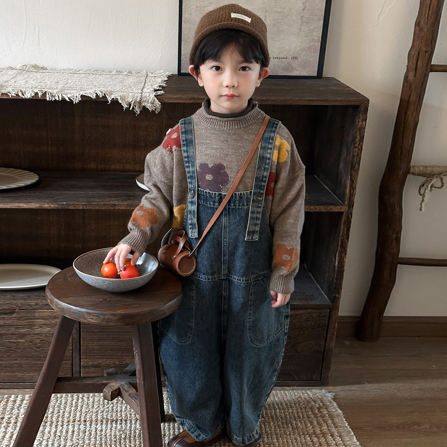 📚 暮晨家新款春装2026男童明线牛仔裤中小童宽松洋气工装背带裤长裤