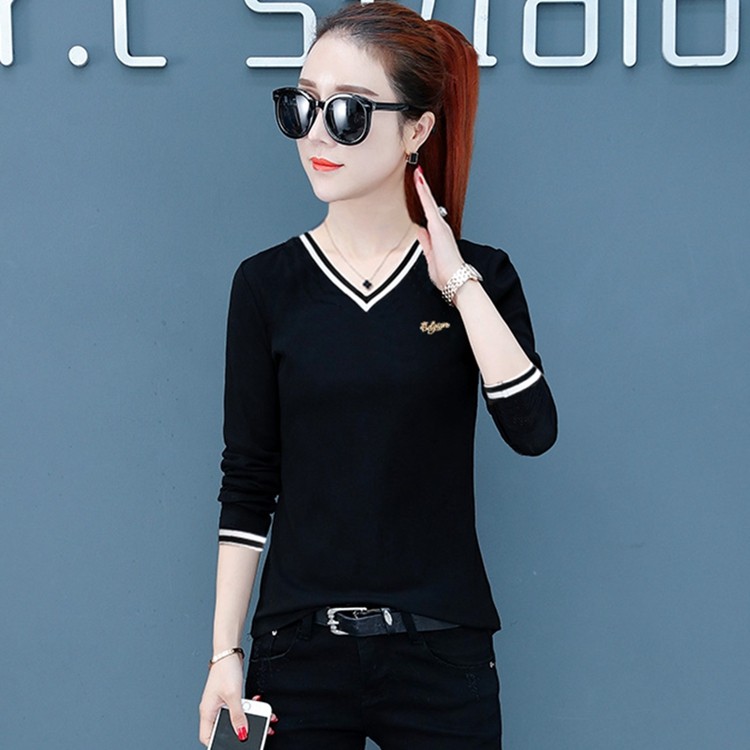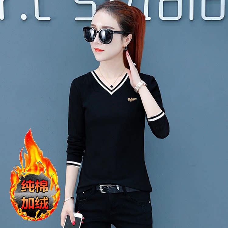 📚 鸡心领打底衫女纯棉2025年春秋季新款洋气长袖T恤冬天加绒保暖衣
