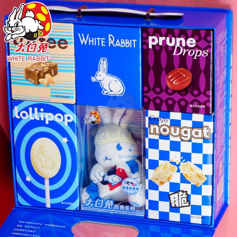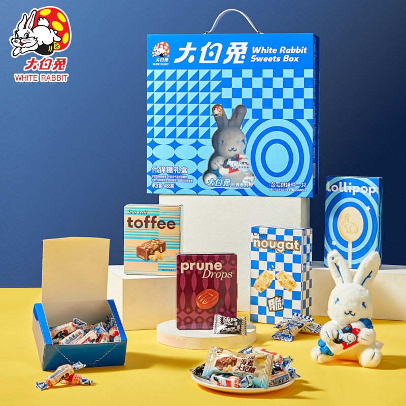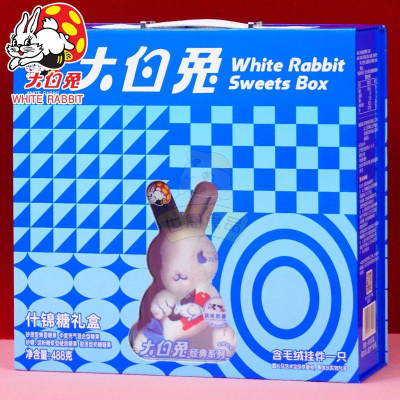 📚 大白兔什锦糖礼盒5种糖果含毛绒挂件488g送礼零食糖果