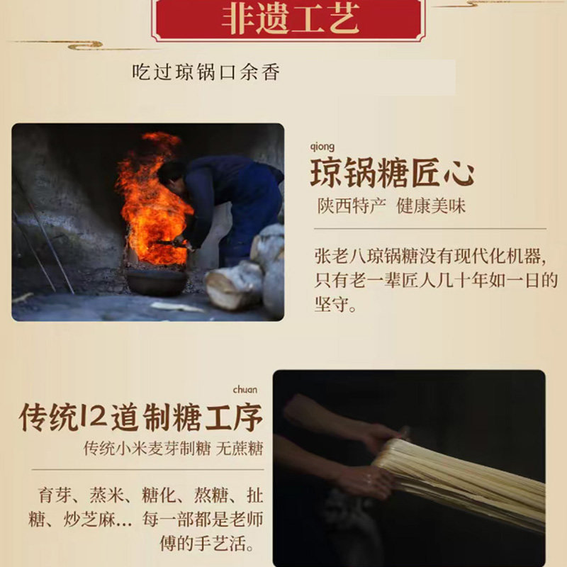 📚 陕西富平特产张老八手工流曲琼锅糖白芝麻黑芝麻传统糕点麦芽酥糖
