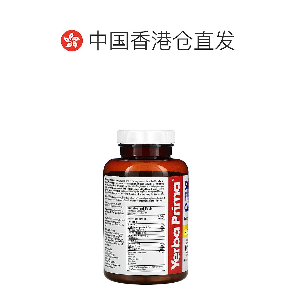 📚 香港直发Yerba Prima可溶性纤维膳食补充剂无麸质随餐服用180粒