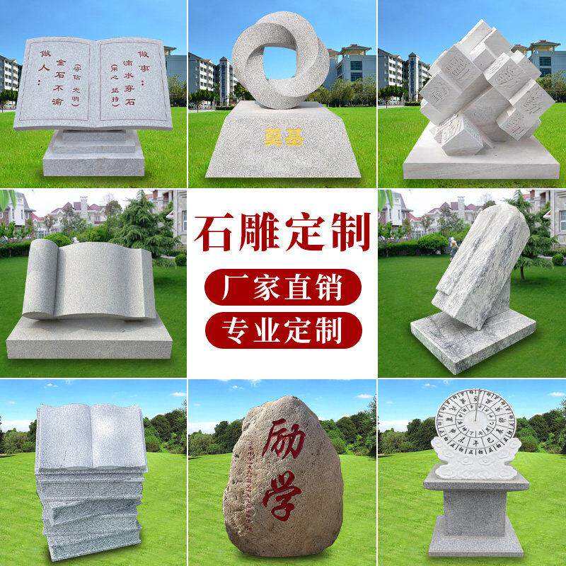 📚 石雕书本大理石刻字书卷书籍校园广场石头书日晷文化景观摆件