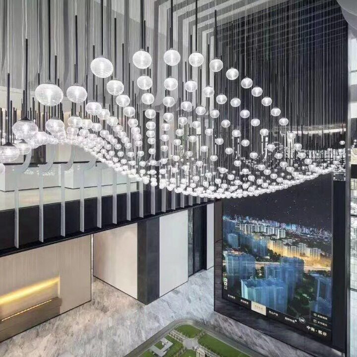 📚 别墅螺纹玻璃球客厅吊灯设计师宴会厅艺术吧台餐厅个性酒店造型灯