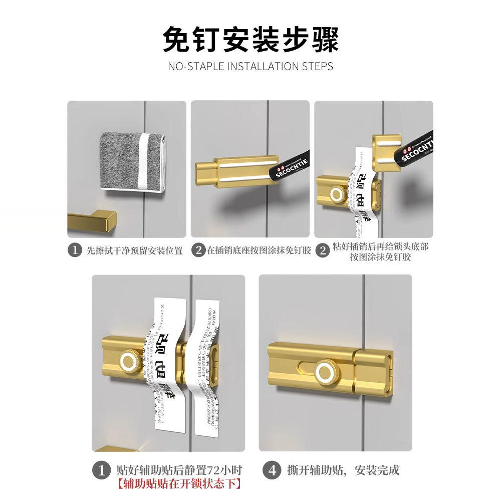 📚 德国卧室门锁免打孔简易门锁门闩插销锁扣木门房门锁卡扣反锁神器