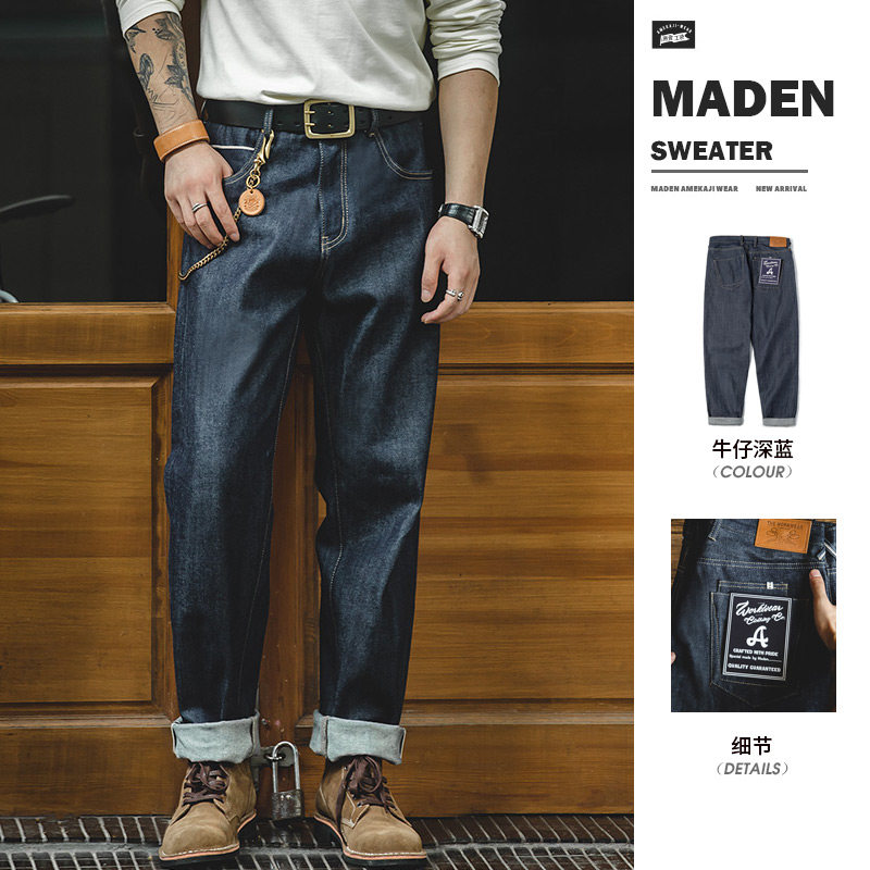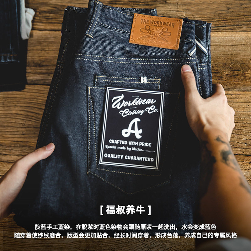 📚 马登工装 日系复古丹宁赤耳原牛直筒牛仔裤重磅养牛长裤子男春秋