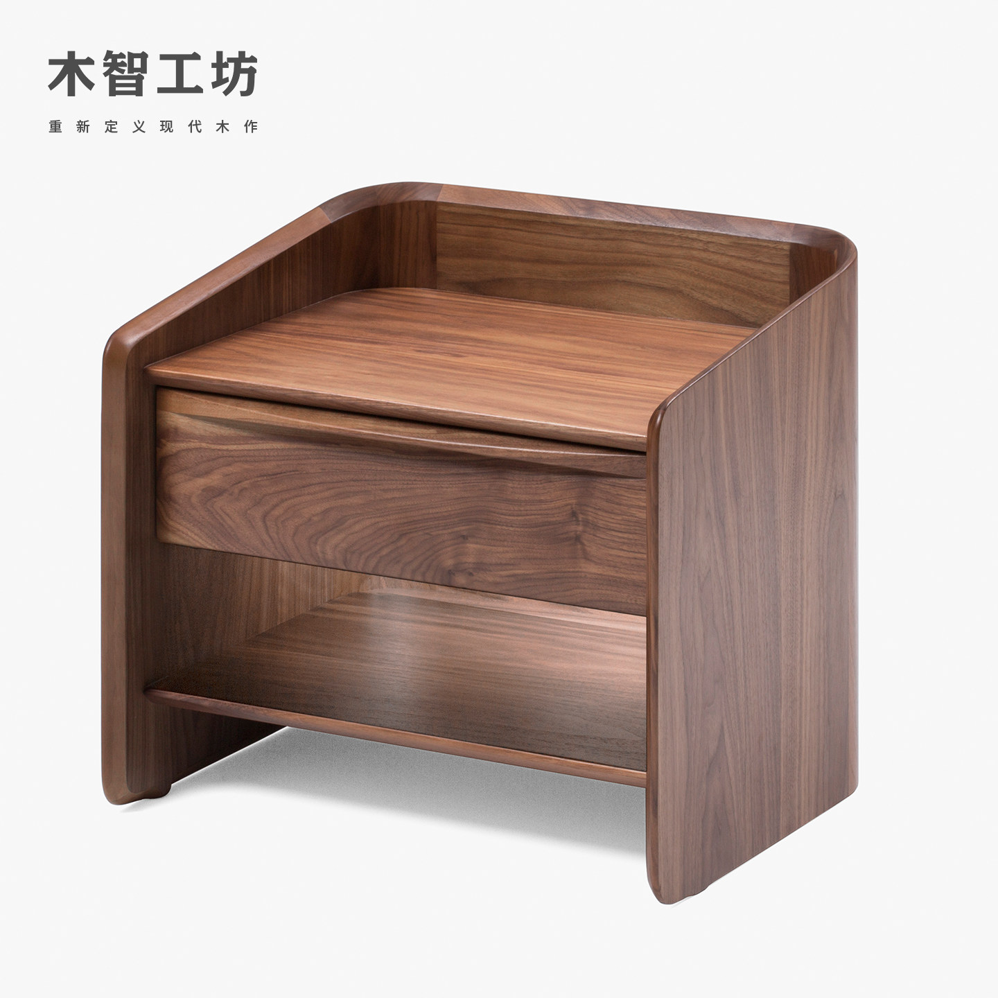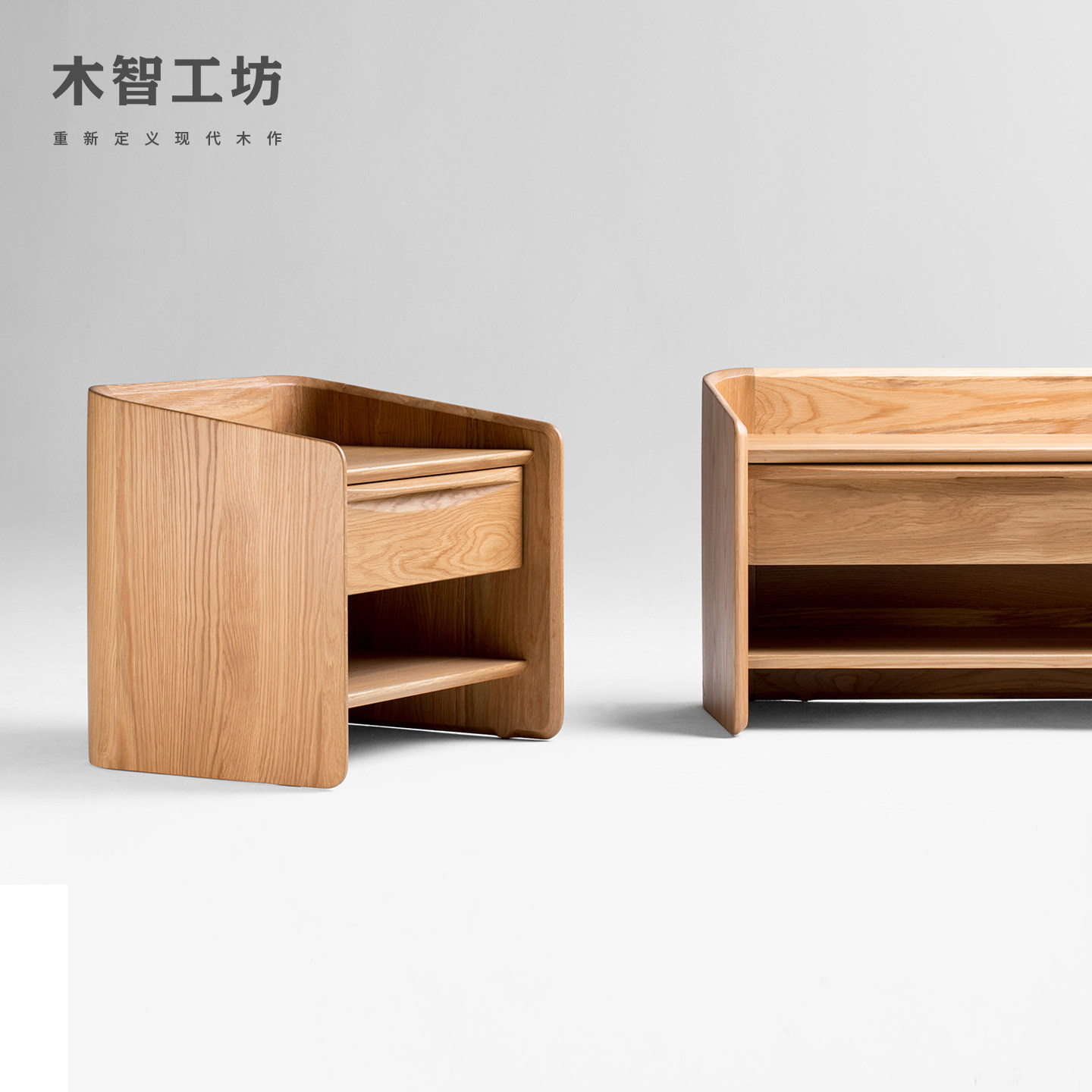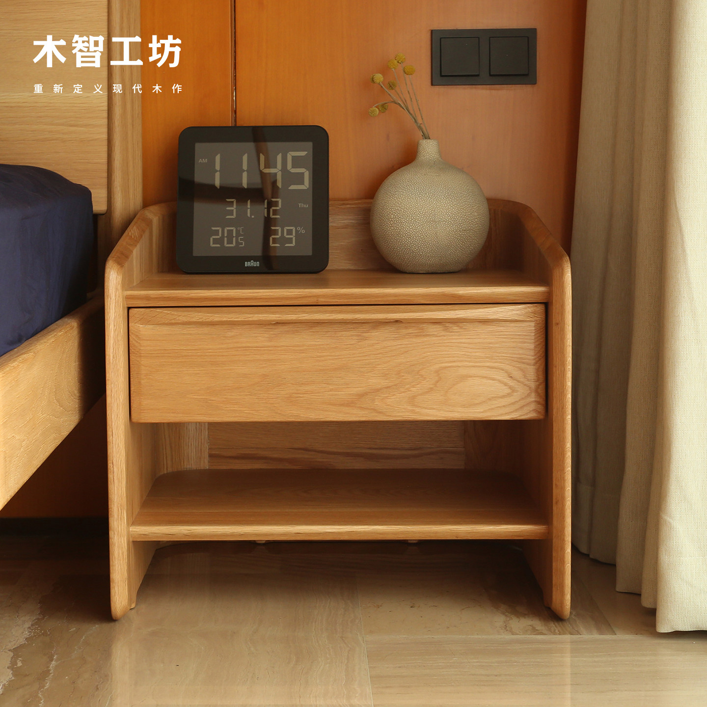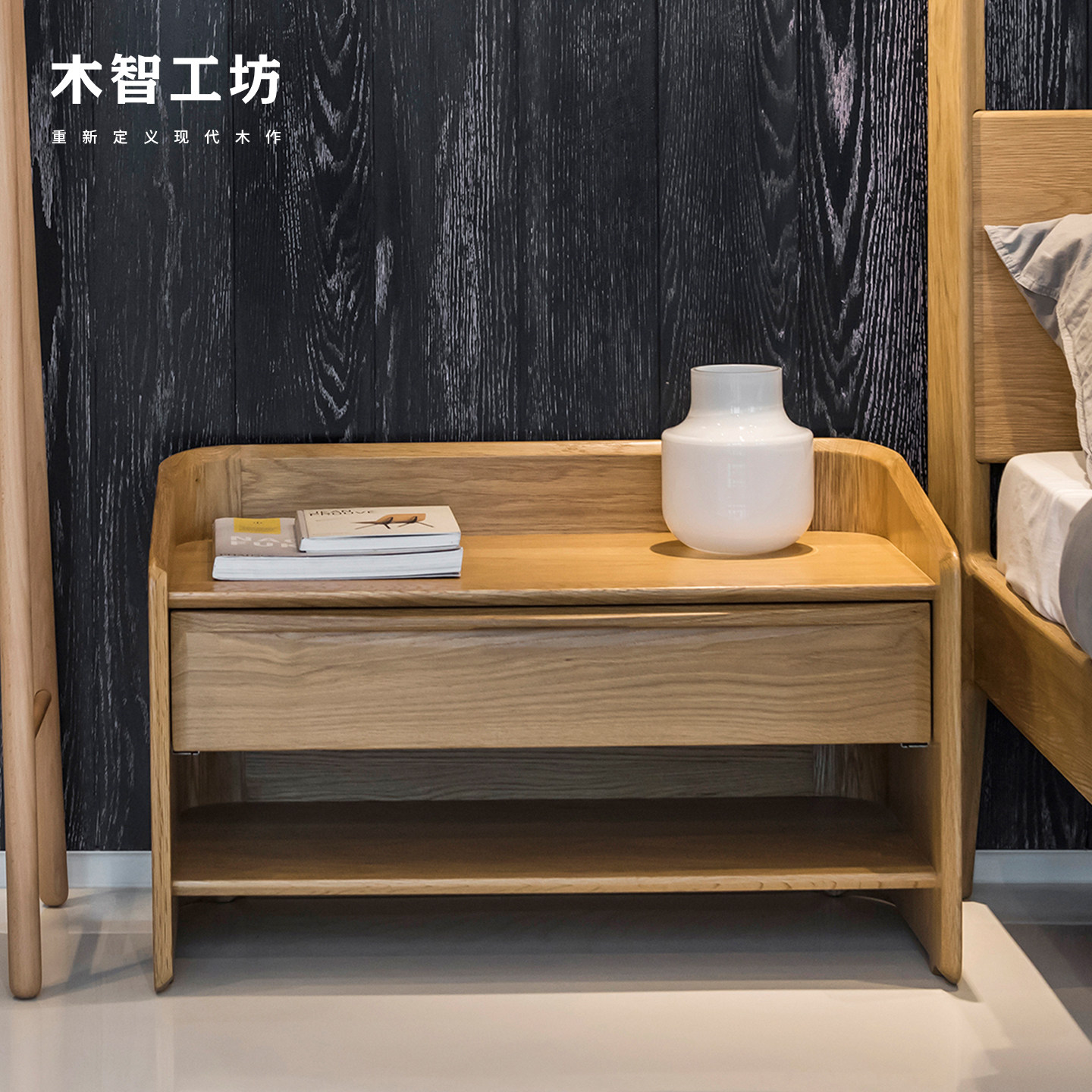 📚 木智工坊港湾床头柜半包围北欧现代简约实木卧室储物柜床边柜MZGF