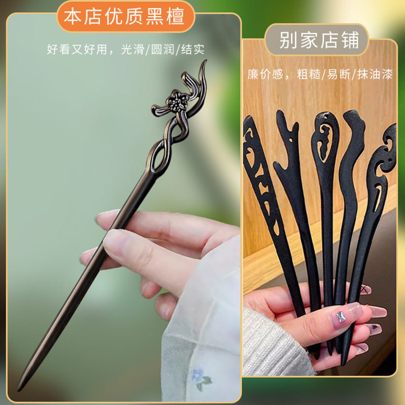 📚 新中式国风弄梅精雕发簪古风女高级感天然黑檀木气质旗袍绾发木簪