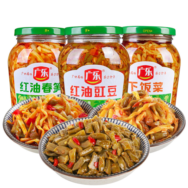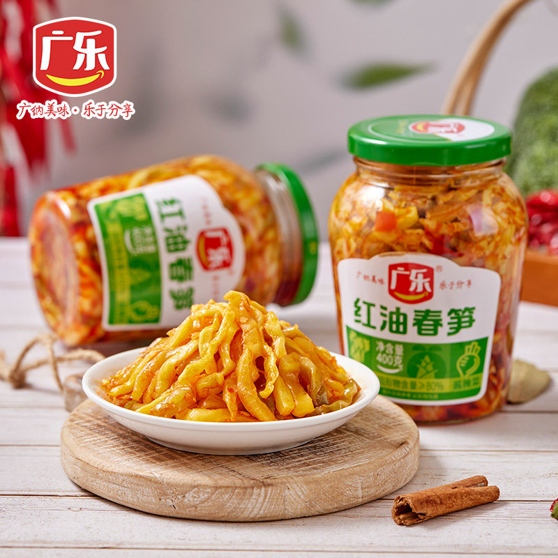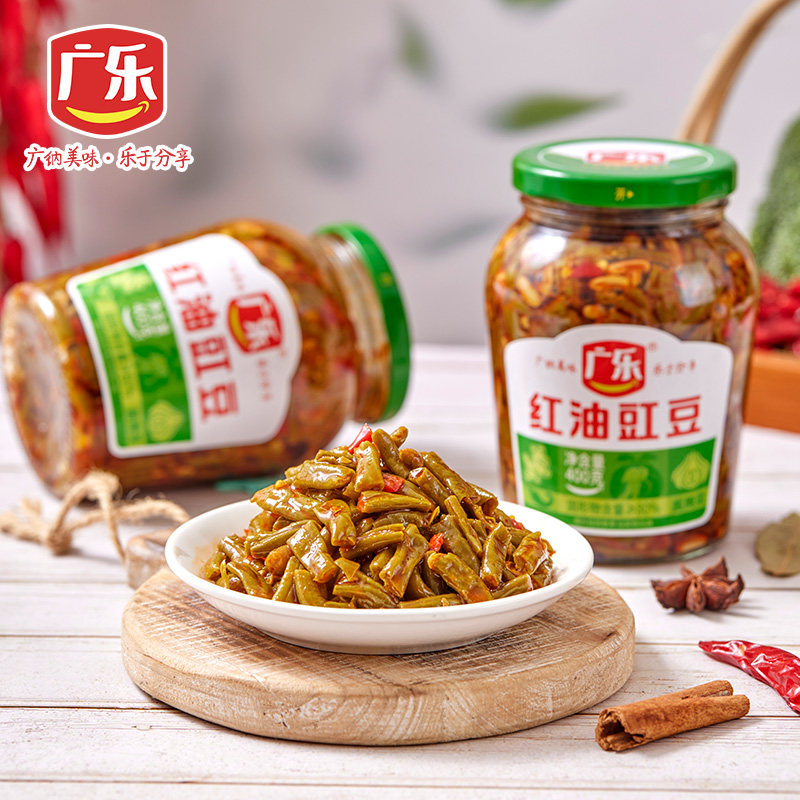 📚 广乐红油春笋豇豆下饭菜瓶装榨菜400g*2爽口开味豆角香辣咸菜罐装