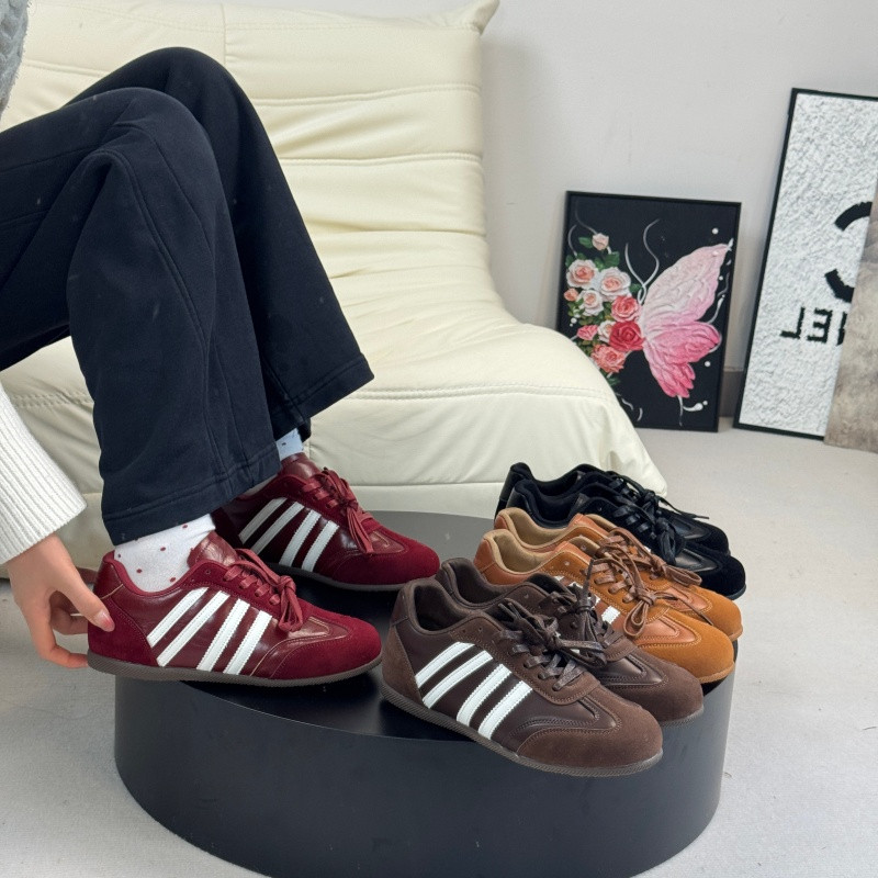 📚 2026复古黑色德训鞋女系带拼色阿甘鞋休闲运动板鞋内增高运动鞋