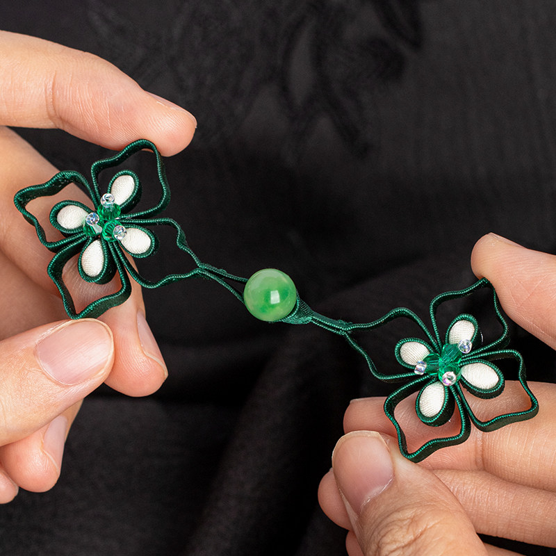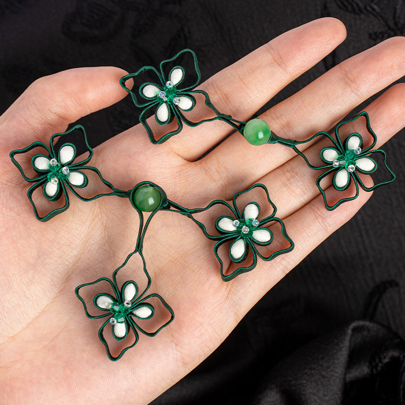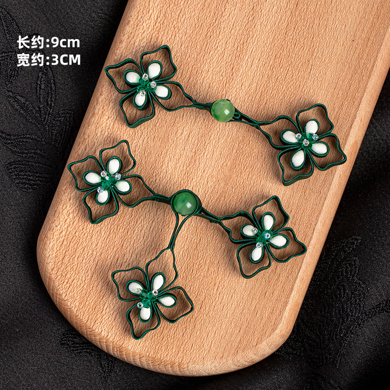 📚 原创手工旗袍盘扣扣子玉石四叶花硬扣中式衬衫纽扣装饰服装辅料女