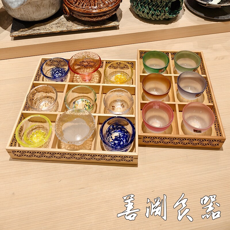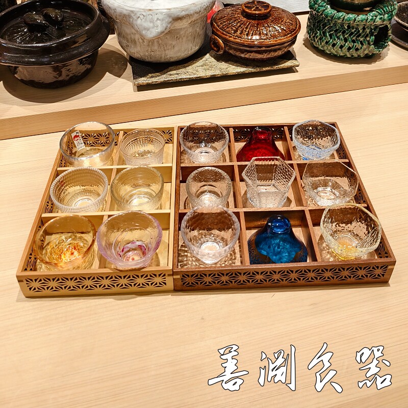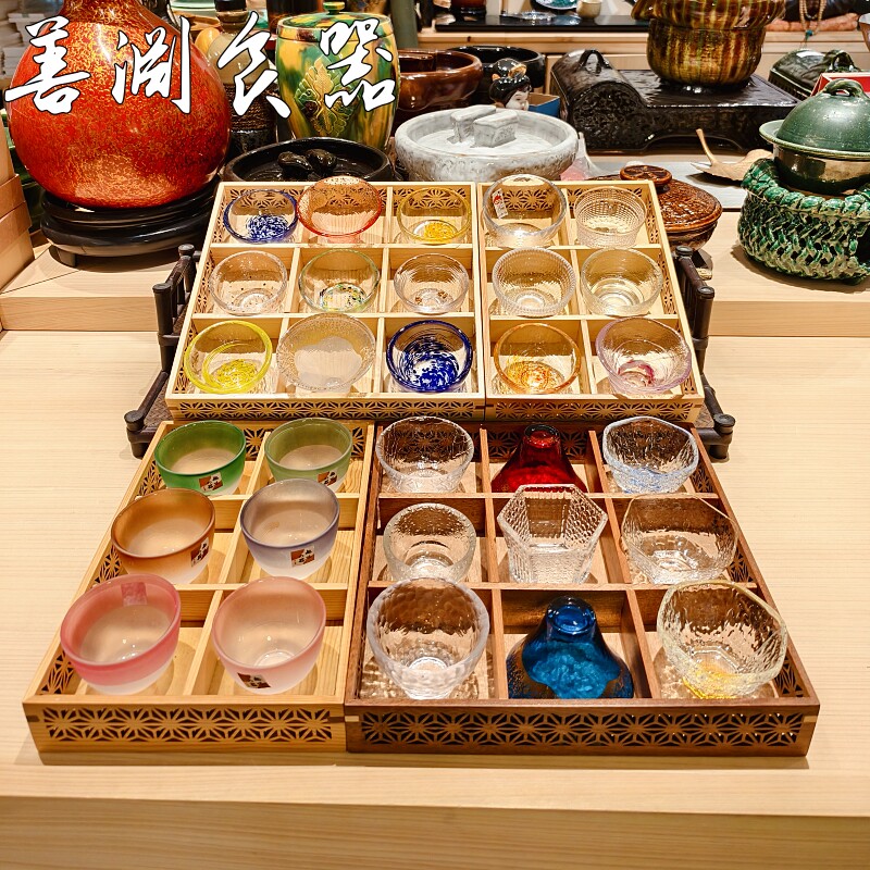 📚 善渊彩色玻璃清酒杯九宫格一口杯日式酒具日料珍味碟居酒屋餐具