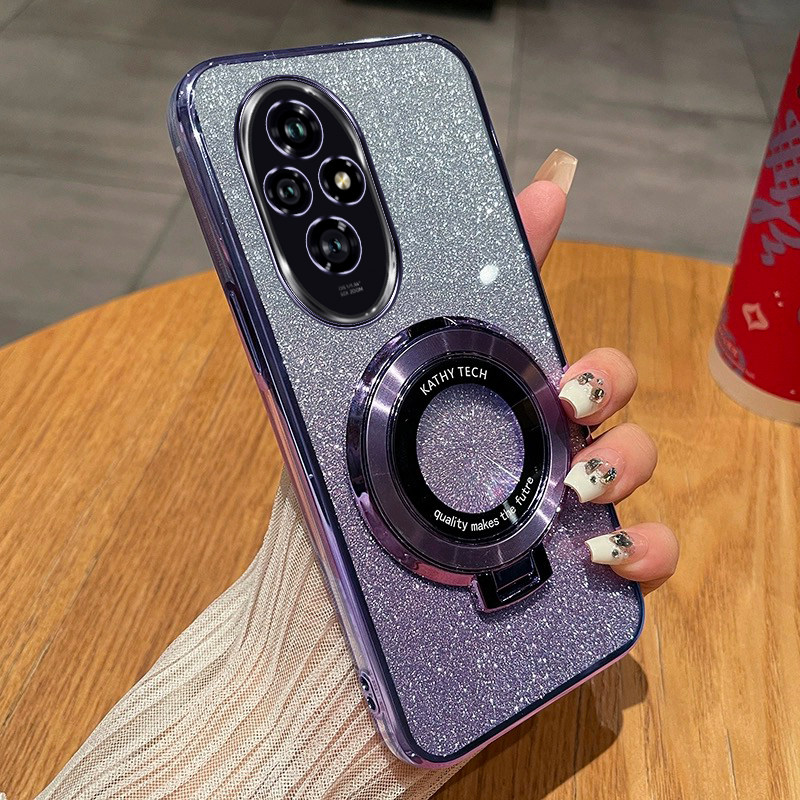 📚 荣耀200手机壳高级感时尚渐变闪粉软壳honor200pro新款创意磁吸支架全包简约超薄防摔荣耀200lite保护适用于