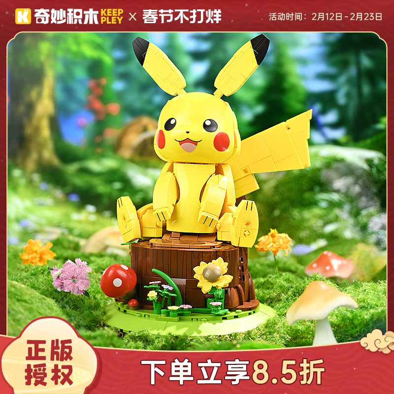 📚 奇妙积木Keeppley宝可梦联名积木乖巧皮卡丘拼装摆件礼物