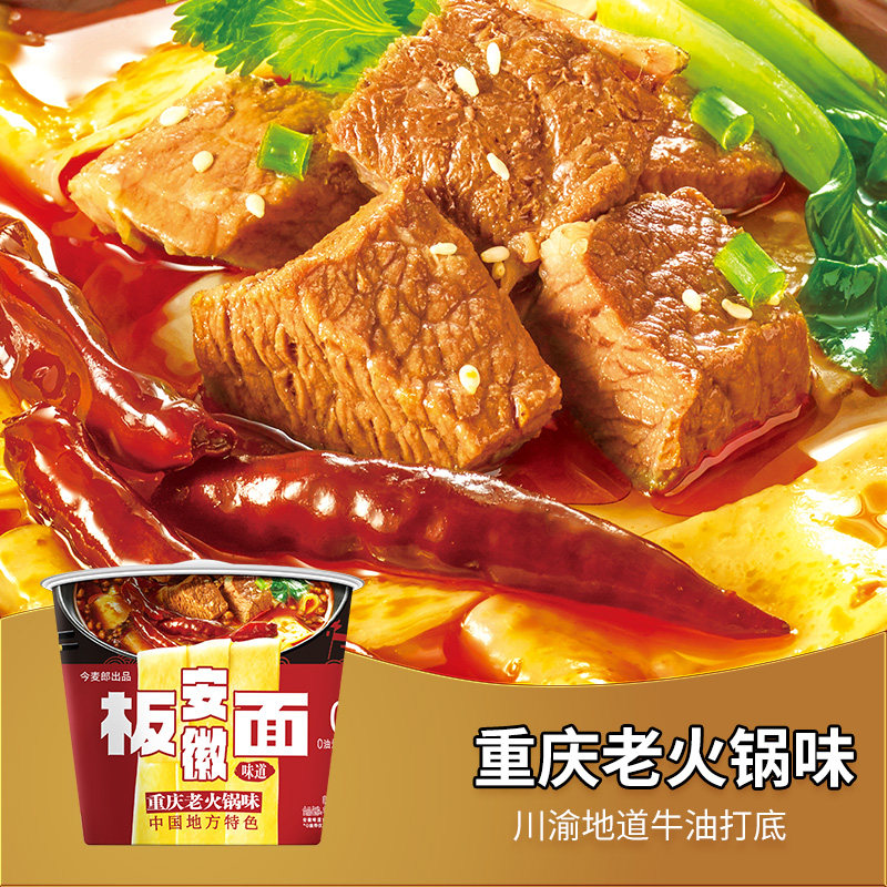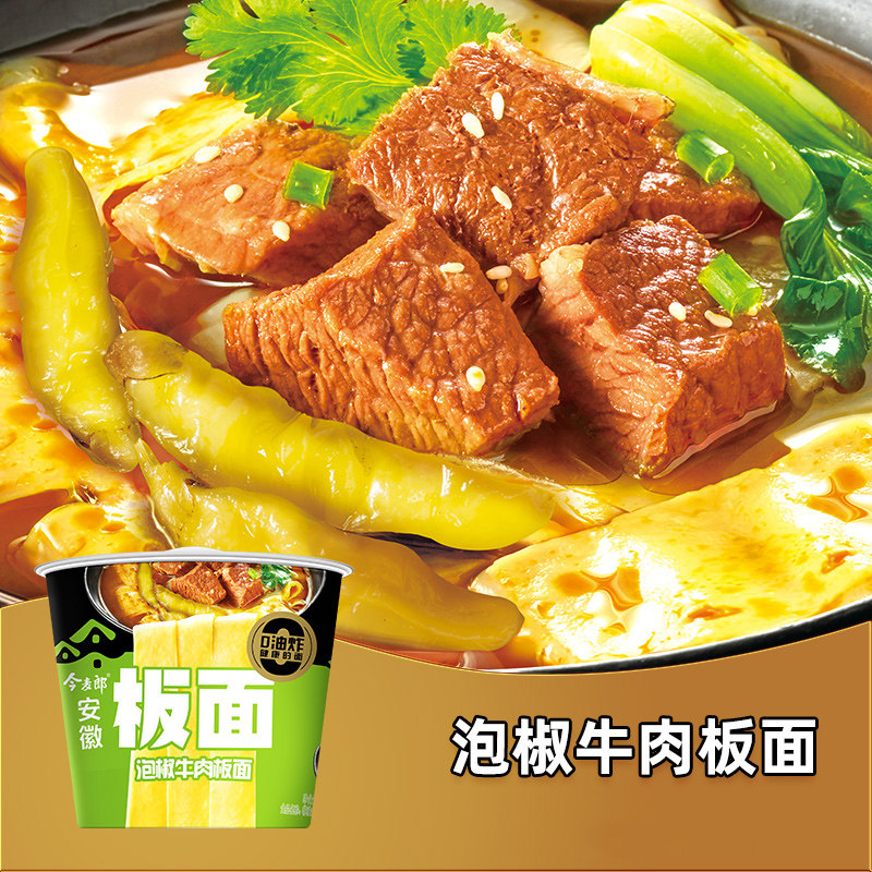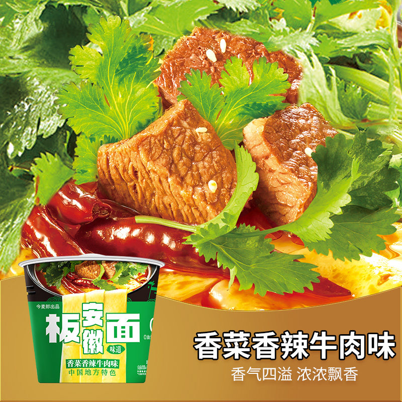 📚 今麦郎板面安徽板面桶装卤香牛肉香辣香菜红油酸辣牛肉面方便面