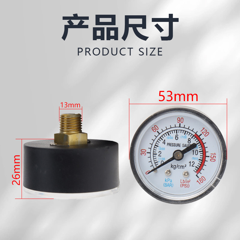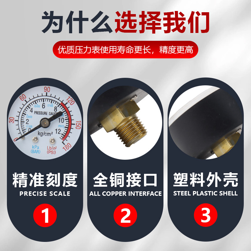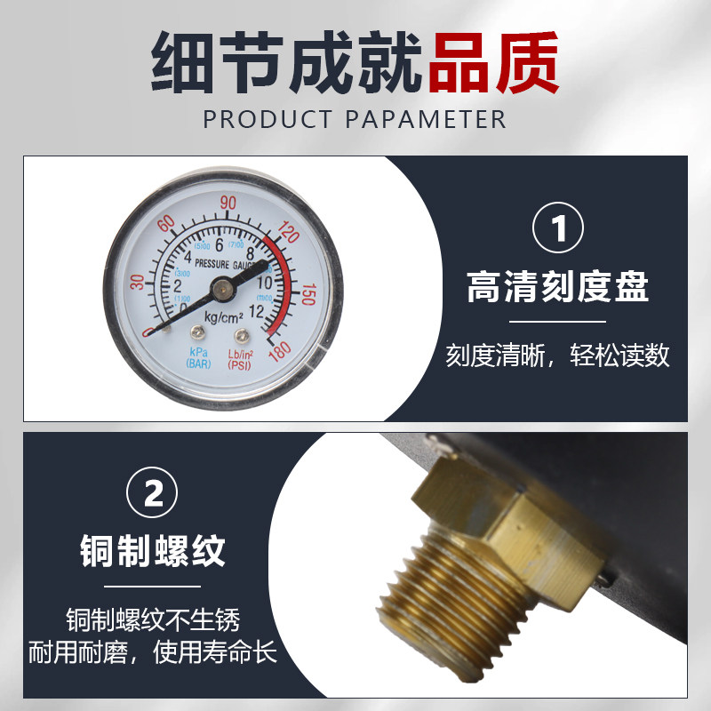 📚 卧式压力表气压空压机压力气压表气泵配件小型打气泵气磅无油机