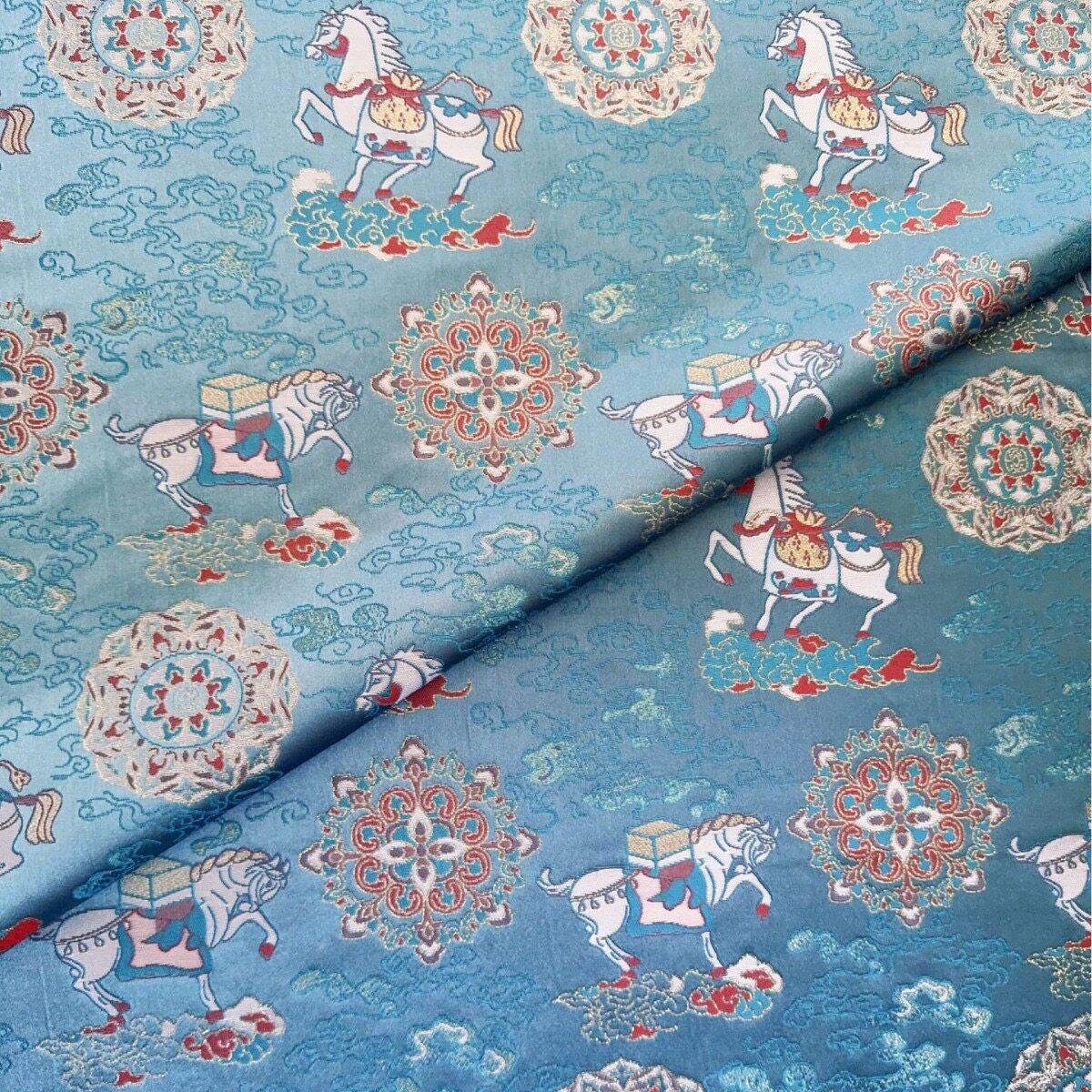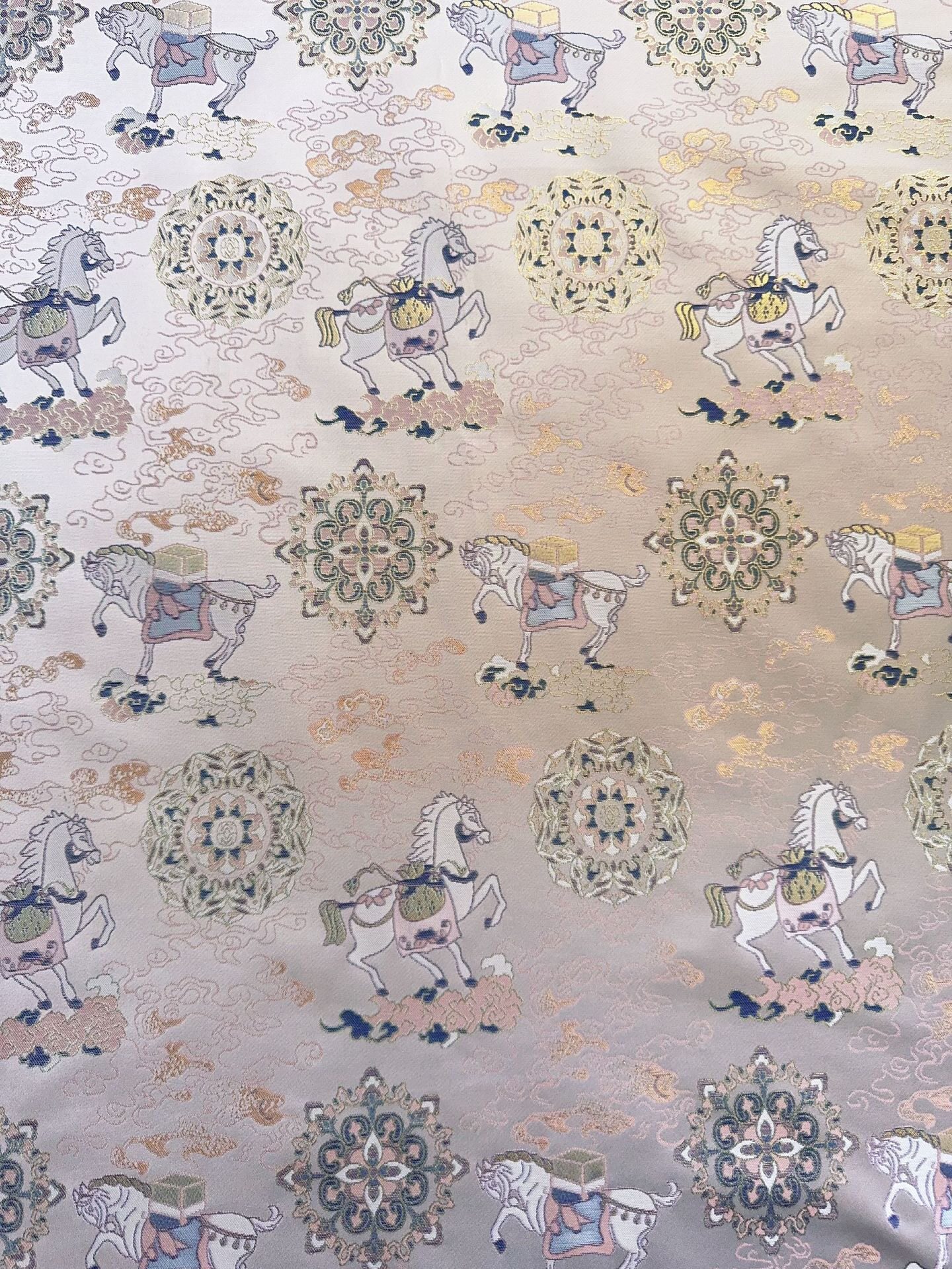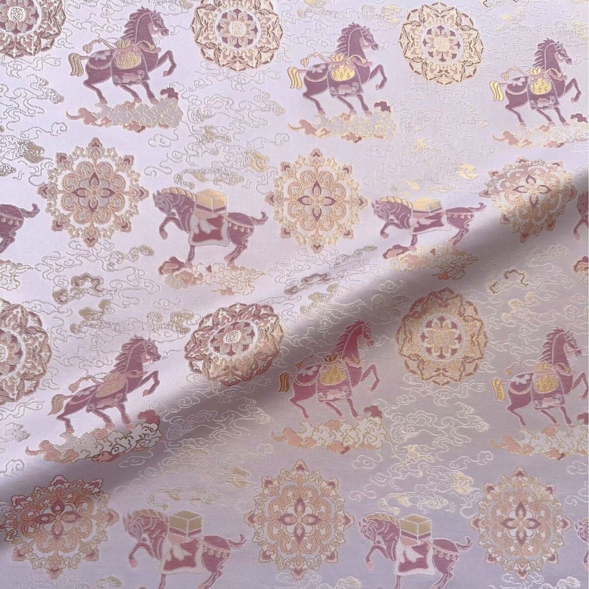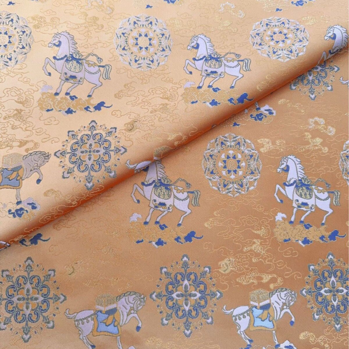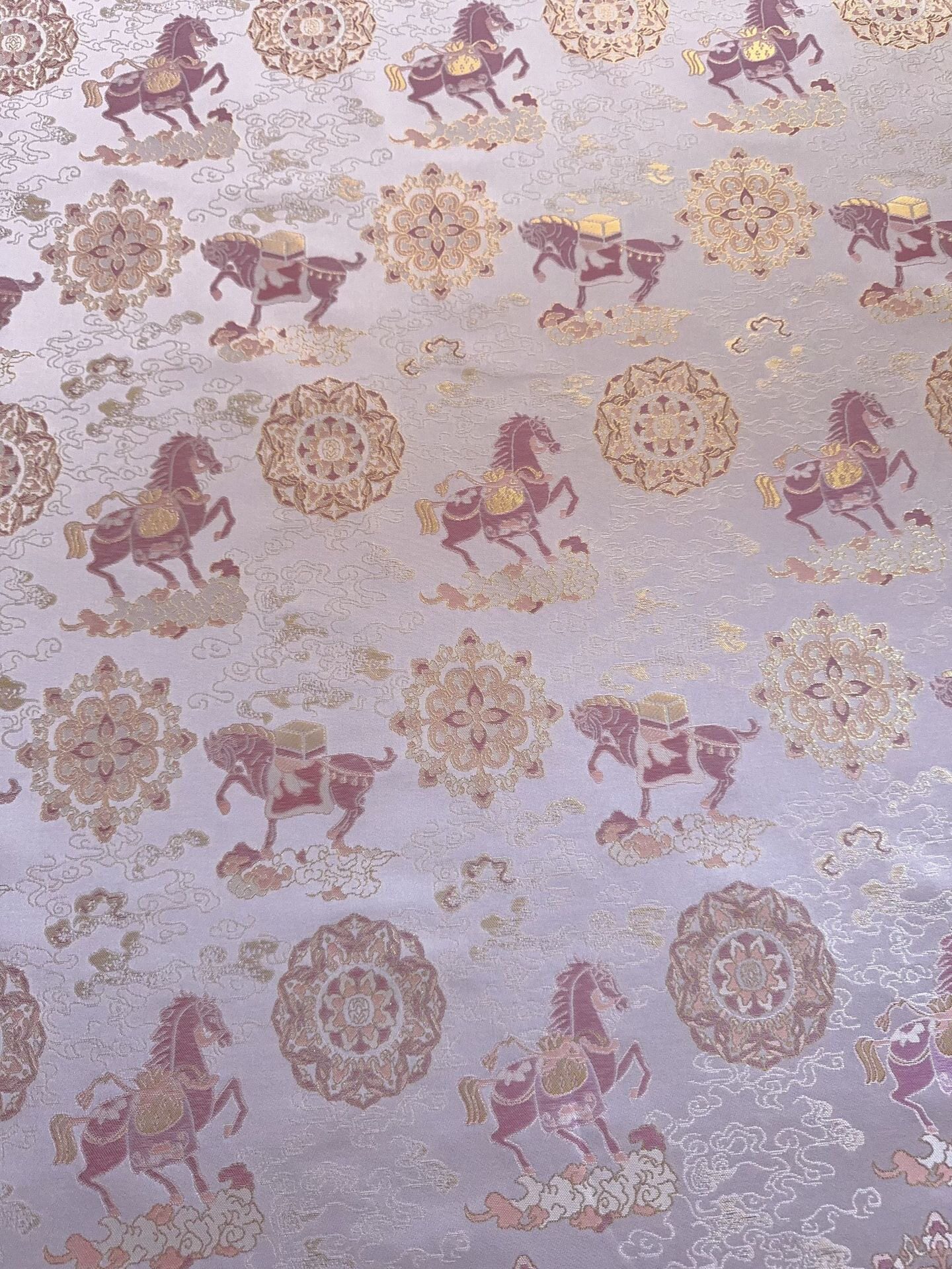 📚 仿宋锦马上有福金色色织提花面料 国风马甲旗袍汉服 半米链接