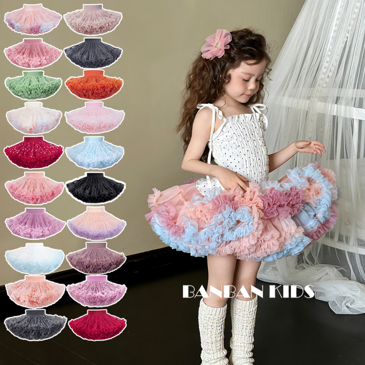 📚 爆卖3万+!精梳棉内里女童公主彩虹色重工蓬蓬纱生日礼tutu半身裙