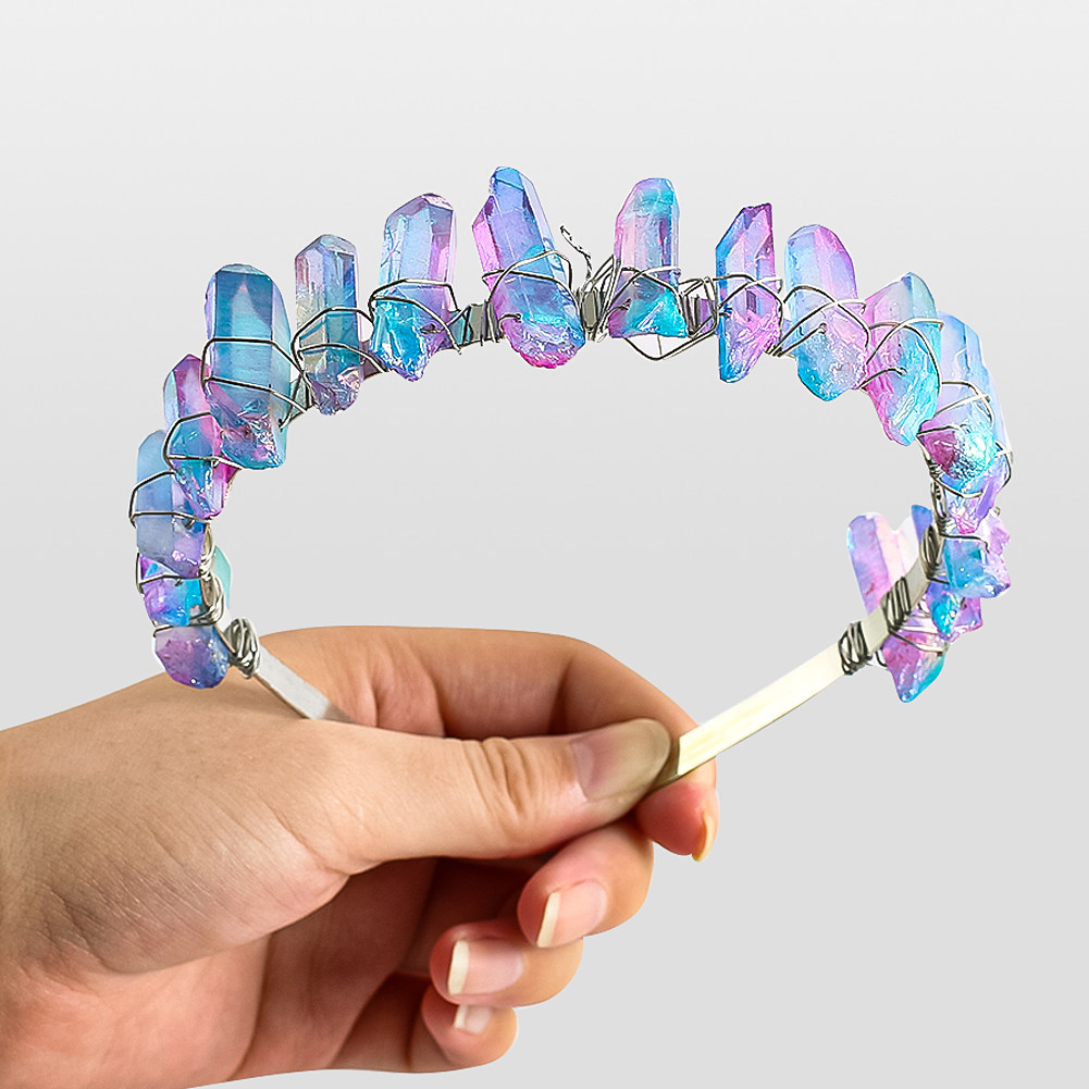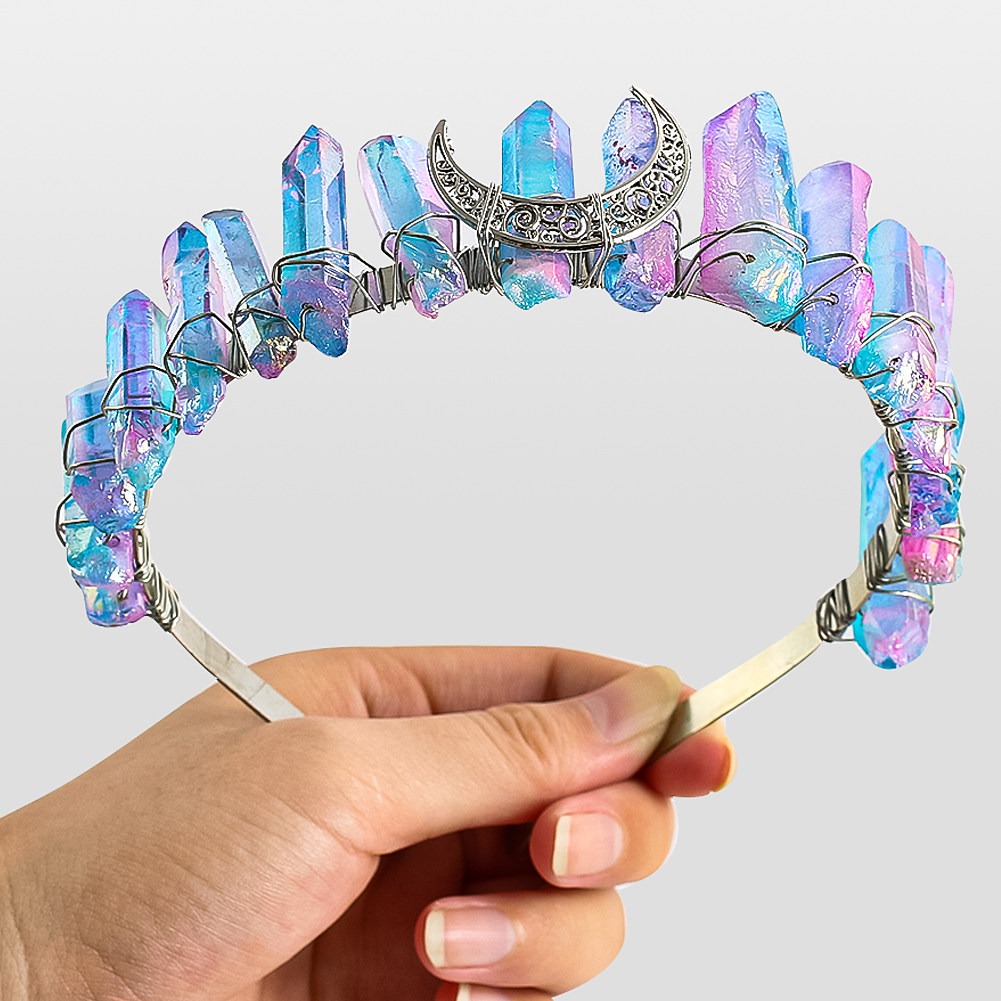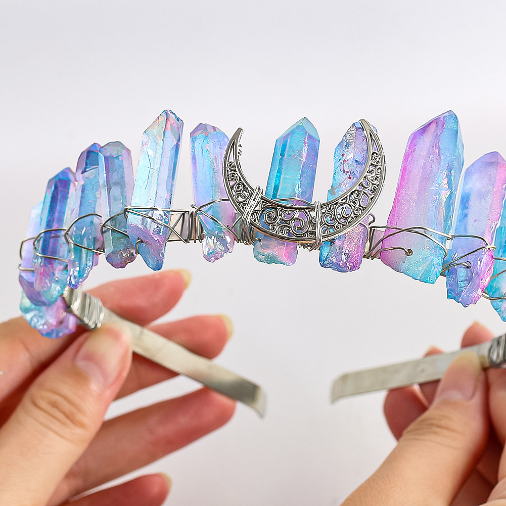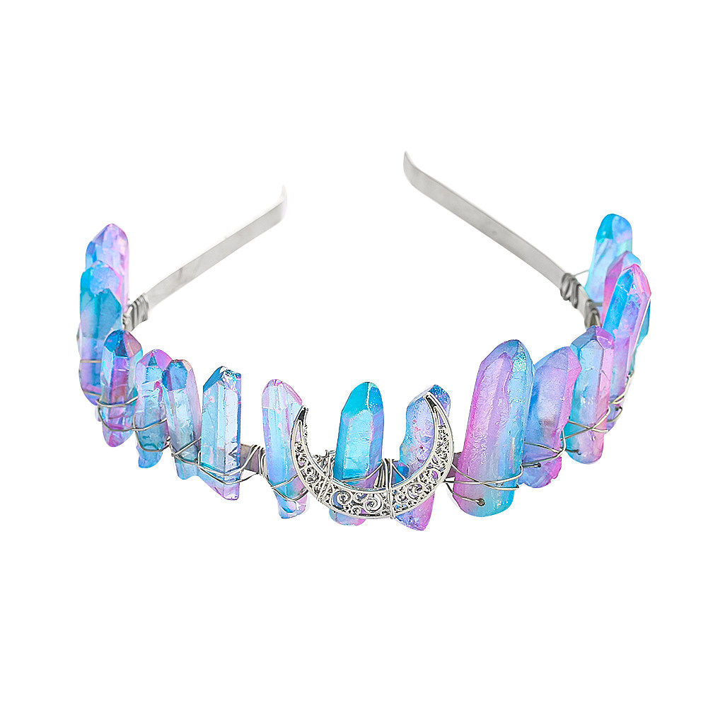 📚 cosplay皇冠头天然水晶女王公主石英晶簇月亮能量手工加冕发饰
