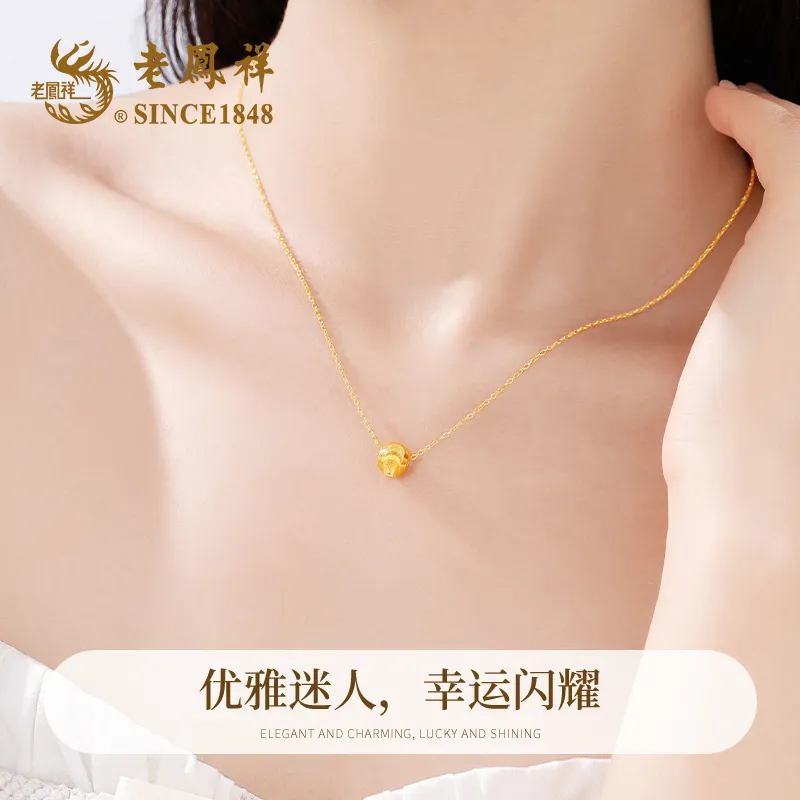 💖心动瞬间!老凤祥足金猫眼珠项链女款:黄金转运珠吊坠,超值生日礼物🎁